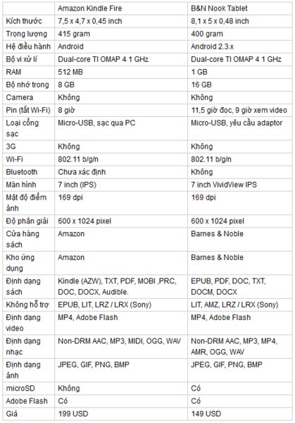 Khi tìm hiểu các máy về e-reader, mình vẫn thích Nook nhất. Kiểu dáng thẩm mĩ, thanh, rất thích. Cái nook tablet được cái Ram, khả năng mở rộng thể nhớ là ăn đứt rồi. Kindle Fire lợi thế về giá. Barnes and Noble là một nhà phát hành sách nổi tiếng không thua gì Amazon, nên quan tâm về sách thì Barnes and Noble là được rồi, không cần quá nhiều kho từ Amazon.