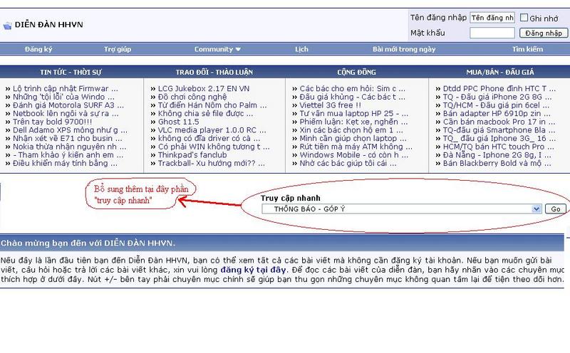 Em thấy hơi bất tiện khi những chổ này không có link trực tiếp tới các chuyên mục (những chổ em đánh dấu vòng đỏ), thật ra có thể tới các chuyên mục bằng cách xuống dưới một tí hay..., nhưng nếu em có thể đi tới các chuyên mục ngay tại các điểm này thì tiện hơn nhiều cho pà con lắm. Em đề nghị các bác Mod nếu được thì nên làm link trực tiếp ngay tại các chổ này.