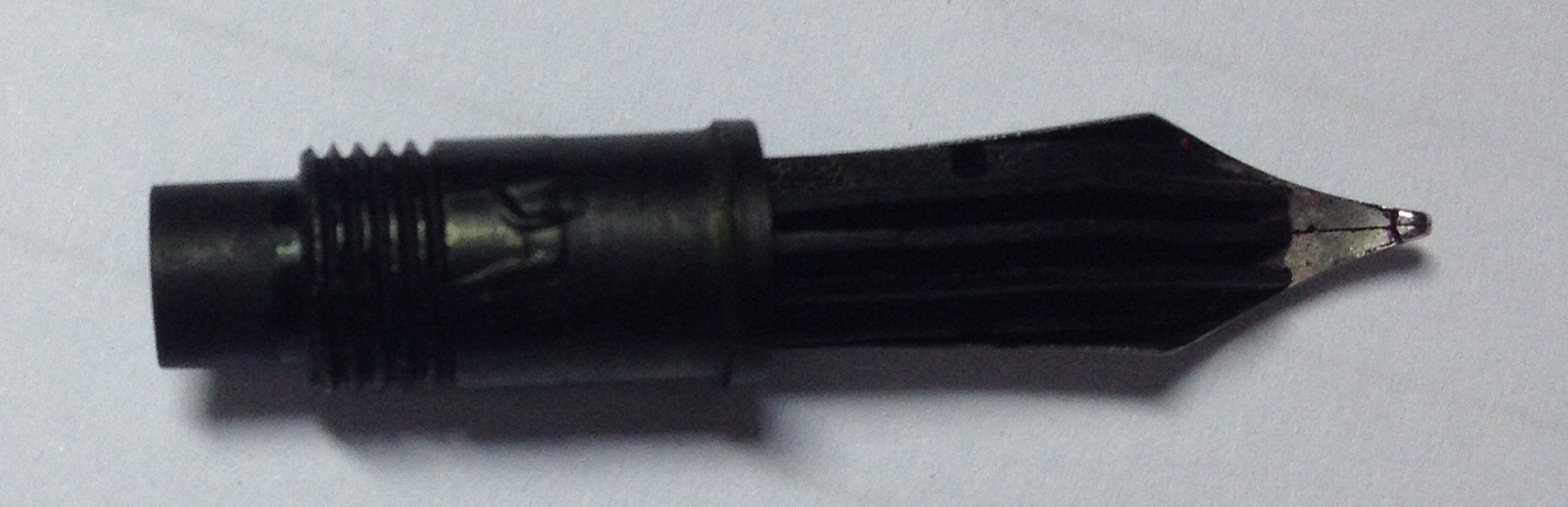 Cái nib unit của cây Ibis của em đây ạ! Lúc dùng cái kềm để kẹp, e sơ ý để trầy cái ring ngoài! :( Buồn ghê luôn! Về sau em dùng miếng cao su cắt ra lót vào thì ko trầy thêm nữa, nhưng gõ mãi mà nó cũng chẳng tuột thêm được tí nào!