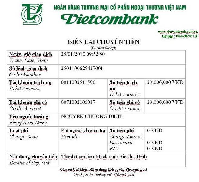 Nói về potay.vn sau khi nhận số TK xong thì đi chuyển tiền, thấy chủ TK là Chương Ngọc Đỉnh, tên thằng dog ghi trên topic đấu giá là ĐỉnhNC, khà khà, cũng khớp rồi, chuyển thôi.
