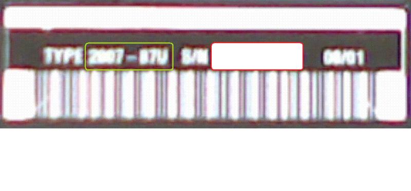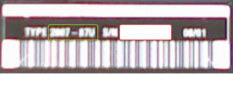 (Lưu ý: Số Type/Model là nội dung ở kế ngay chữ TYPE, có khuôn dạng TTTT-MMM, trong hình minh họa là 2007-87U )