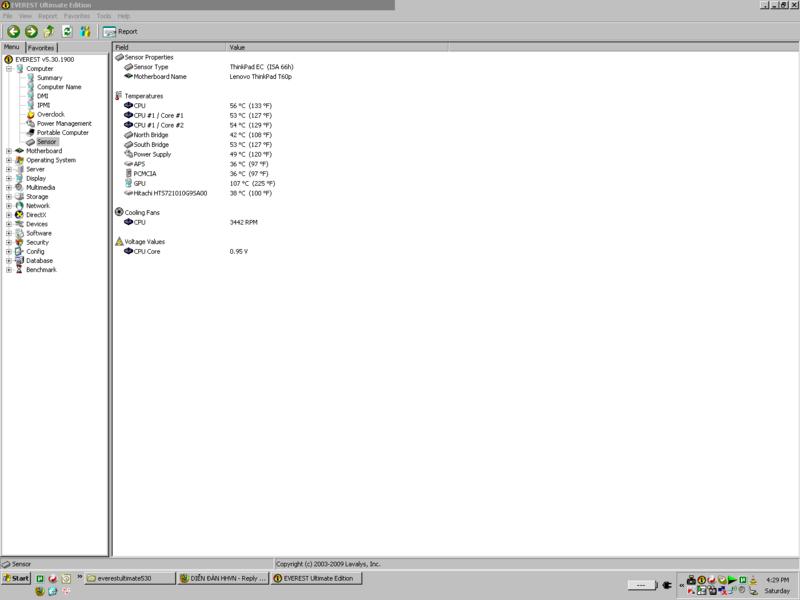 Con T60P của bác thế là nhiệt độ còn mát đấy, của em thông số như sau, anh em xem thế có phải là ngưỡng nguy hiểm lắm không ạ? Dù máy đã vệ sinh và trít lại keo rồi. hic hic.