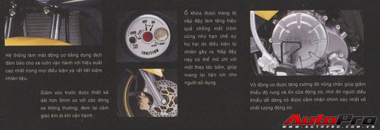 * Động cơ: SOHC, 1 xylanh, 4 thì, 4 van, làm mát bằng dung dịch