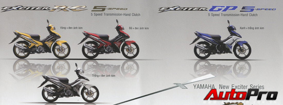 Theo những thông tin xuất hiện trên Catalog, Yamaha Exciter 2011 sẽ bao gồm 3 phiên bản. Đầu tiên là Exciter RC côn tay với hộp số 5 cấp được ra mắt với ba màu chủ đạo vàng, đỏ và trắng kết hợp cùng đen ánh kim.