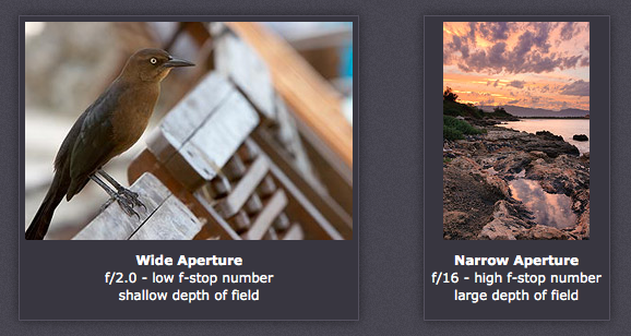 Khẩu độ: điều khiển diện tích cho phép ánh sáng đi vào trong máy ảnh.
