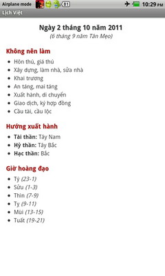 + Âm lịch: xem lịch có ngày, giờ, xem theo ngày, v.v. Nói chung là rất chi tiết.
