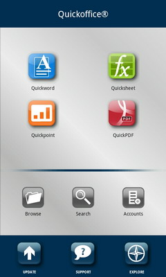 + Quickoffice: bộ ứng dụng văn phòng, xem + tạo + chỉnh sửa với Word và Sheet.