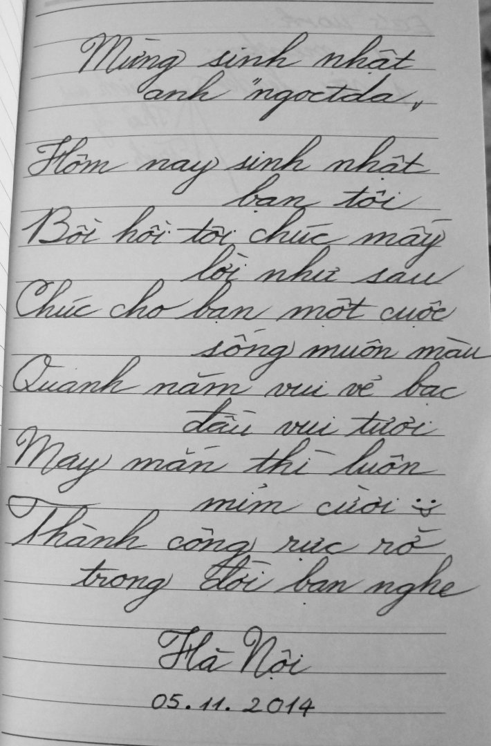 Xin gửi tặng anh bài thơ mừng Sinh Nhật, em hỏi bác Gồ rồi chép tay lại ạ!
