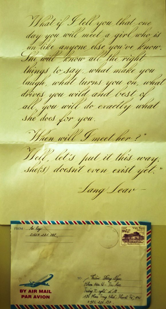 Đôi khi những thứ chỉn chu (mặc dù em rất thích và thường cố gắng để được như vậy) chưa chắc đã là những thứ tuyệt vời nhất bác ạ. Với em, tình cảm gửi gắm trong những lá thư và một chút đợi chờ, ngóng trông có ý nghĩa rất nhiều bác ạ <3Tiếc quá... nó hơi nhăn... do bị gập mất để nhét vừa phong bì![]()