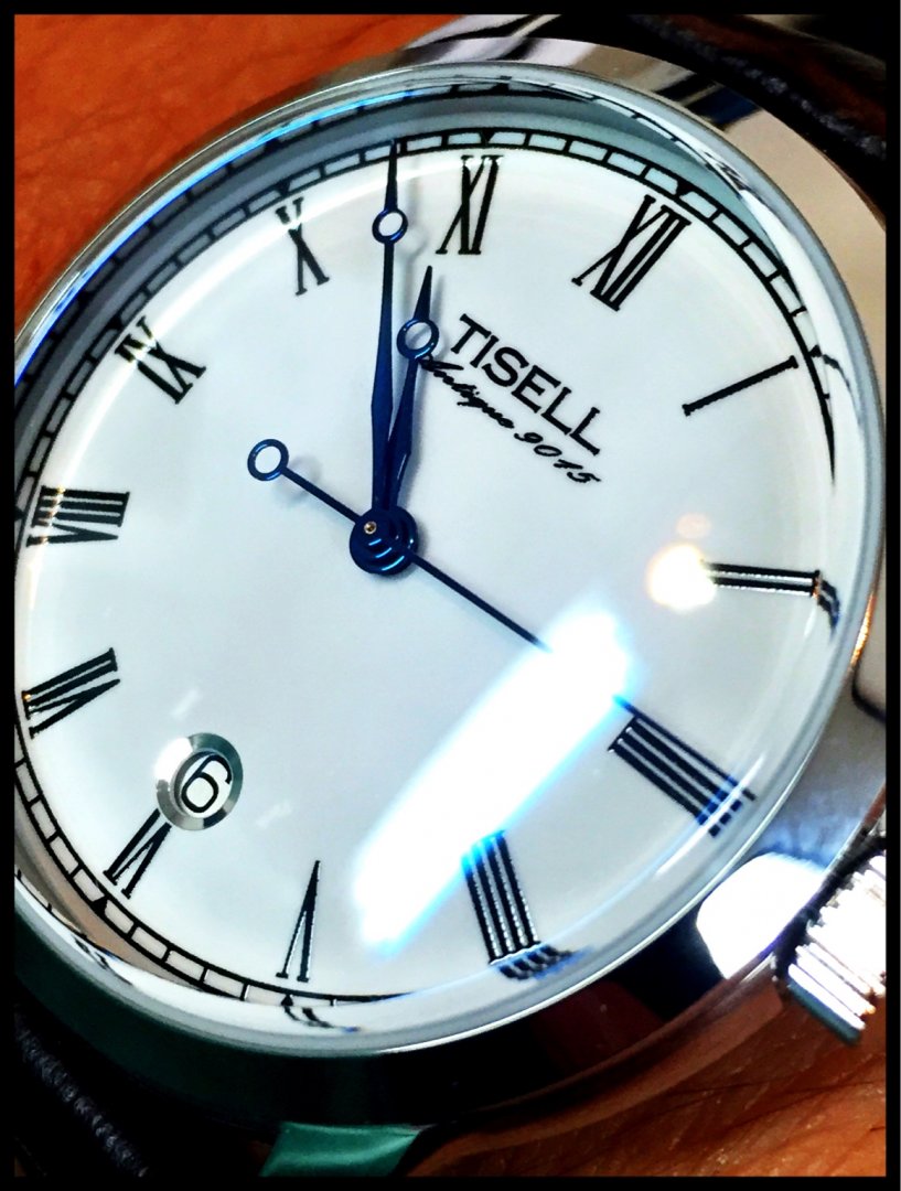 Thêm nưa con tisell này kính trước là shapphier cong (chắc ko là nguyên khôi đâu chỉ tráng thôi), đc phủ lớp chống lóa (AR), dây da thì giả cá sấu thôi và mỏng chắc phải thay dây và khóa gập cho nó chảnh lên tí, nói chung với tầm giá 195$ con này quá đc khi chơi đồng hồ homega, option này mà vào stowa, nomos, Steinhart.....chắc giá gần 1k$, cùng là nhái cả mình ít tiền chơi nhái bén, còn đại gia chơi ếch ương!!!!!