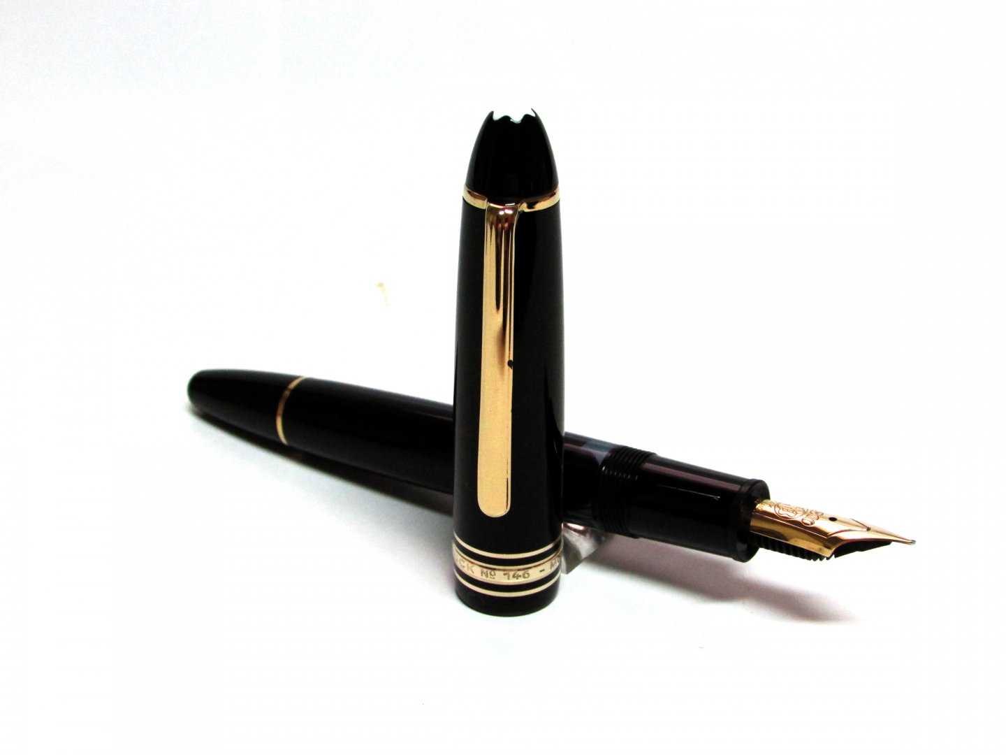 MS36 : Bút máy Montblanc Meisterstuck 146 đen cài vàng (Made in Germany), ngòi bút bằng vàng 14K size F với logo hoa tuyết nổi bật trên lưng ngòi. Hàng new 98% (không hộp). Giá giao lưu 5.600.000 VND.