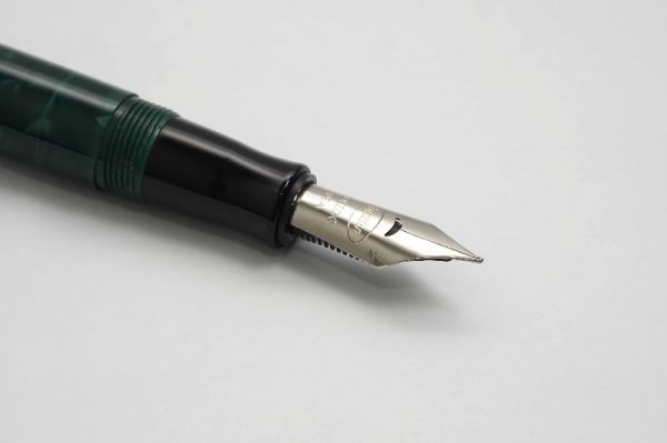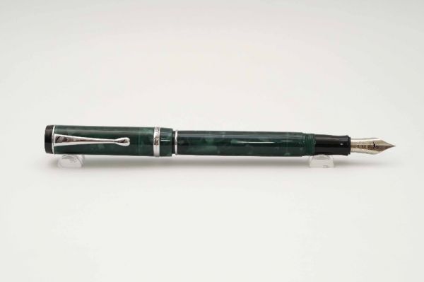 Conklin Duragraph Forest Green là model ra mắt thị trường những năm 2000s, tuy là dòng thế hệ mới nhưng bút vẫn lưu giữ những giá trị mang tính kế thừa di sản của nhà sáng lập Roy Conklin. Bút có kích thước midsize nên phù hợp với mọi người dùng. Vỏ bút gia công từ hỗn hợp nhựa resin cao cấp phối màu “forest green” vân đá cẩm thạch rất đẹp. Nắp bút đậy kiểu ren vặn, vòng capband mạ bạch kim có khắc laser chữ Conklin rõ nét. Cài bút bằng kim loại mạ palladium tạo dáng cong tinh tế. Đỉnh nắp có logo Conklin Est 1898 nhủ bạc rất đẹp. Thân bút có chiều dài hợp lý nên tạo cảm giác khá cân bằng và đầm tay. Ngòi bút “omniflex” cỡ #6 rất đặc trưng của Conklin được gia công từ chất liệu thép mạ bạc với hình dạng và thiết kế đặc biệt, cho phép ngòi có độ flex tuyệt vời mang lại cảm giác khác biệt khi viết. Đầu rãnh dẫn mực có breath-hole hình bán nguyệt rất tinh tế, lưng ngòi khắc logo Conklin mạ vàng kèm ký hiệu Toledo USA. Ngòi bút cỡ M cho ra nét chữ rất êm và trơn mượt khi viết hoặc ký. Bút bơm mực bằng converter cao cấp đi kèm. Tổng thể bút là hàng đã qua sử dụng, ở tình trạng đẹp 98%, bút không kèm hộp và đang hoạt động tốt.