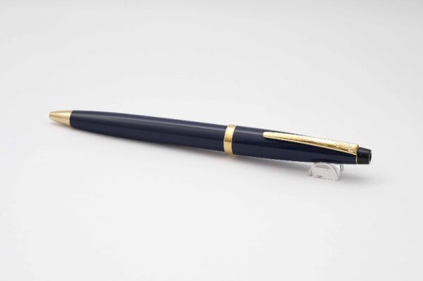 Phiên bản bút bi Parker 75 Blue Lapis Lazuli Lacquer là model cao cấp thuộc series Parker 75 Lacquer được sản xuất tại Pháp vào năm 1979, bút mang thiết kế đương đại và phong cách tân cổ điển với màu sắc đẹp cũng như độ hoàn thiện cao về mặt thẩm mỹ. Bút có kích thước cân bằng hoàn hảo và hiệu năng sử dụng tốt. Thân và nắp bút bằng hợp kim đồng, vỏ ngoài được hoàn thiện bởi lớp lacquer màu xanh Lapis Lazuli, đây là màu sắc chỉ có ở loại đá cẩm thạch dùng để trang trí trong các cung điện hoàng gia. Viền nắp có khắc logo Parker và ký hiệu II.A France. Thanh cài bằng hợp kim mạ vàng 23K, tạo dáng mũi tên Parker truyền thống. Đỉnh nắp bút kết thúc bằng chóp kim loại vát bằng mạ vàng. Bút hoạt động bằng cơ cấu ấn nắp rất êm tay với ruột bút bi màu đen đi kèm. Tổng thể bút là hàng đã qua sử dụng, ở tình trạng 99% và kèm hộp.