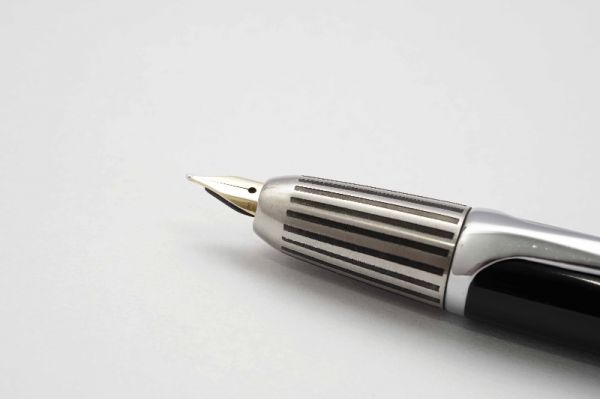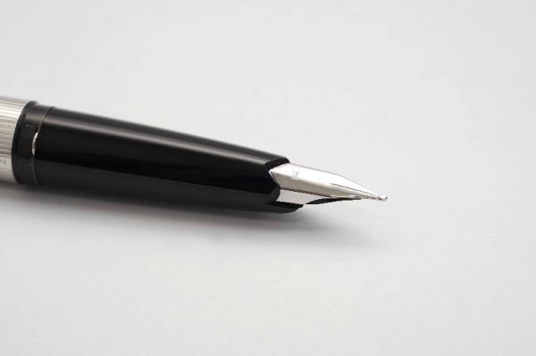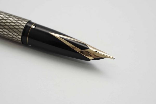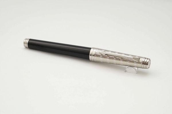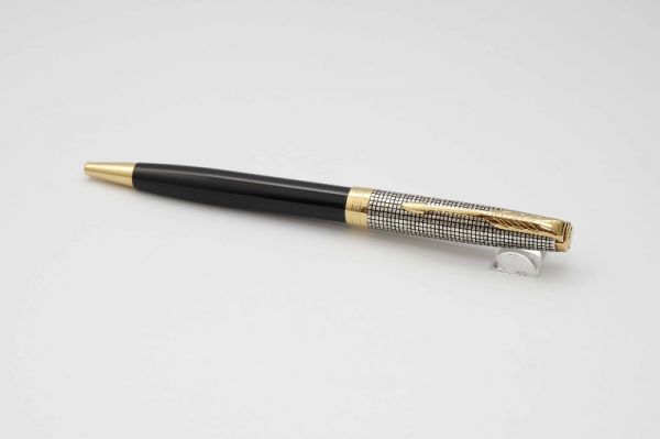 Phiên bản bút máy Parker Sonnet Cisele Sterling Silver thuộc series Sonnet sản xuất giai đoạn đầu những năm 1990s tại Pháp, bút có kích thước cân bằng hoàn hảo, hiệu năng tốt và độ thẩm mỹ cao. Thân và nắp bút gia công từ chất liệu bạc 925, bề vỏ bút tạo điểm nhấn với các hoa văn Ciselé lấy cảm hứng từ những ô cửa sổ của các toà nhà cao ốc sầm uất ở New York những năm 70s. Thân bút có chiều dài hợp lý tạo cảm giác thoải mái khi sử dụng. Nắp bút đậy êm và chắc tay, vòng cap band viền nắp có khắc logo Parker và nhiều dấu hallmark rất chi tiết. Thanh cài bằng hợp kim mạ vàng 23K, tạo hình mũi tên Parker tinh tế với hàm ý luôn phát triển hướng về phía trước, đi từ quá khứ đến tương lai. Ngòi bút chế tác từ vàng 18K dạng monotone có độ hoàn thiện cao, lưng ngòi chạm khắc nhiều hoạ tiết tinh xảo kèm logo Parker, ngòi bút cỡ F cho ra nét chữ êm và trơn mượt khi viết. Bút bơm mực bằng converter cao cấp đi kèm. Bút là hàng NOS (New Old Stock) và fullbox.