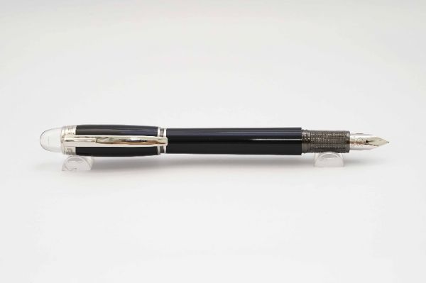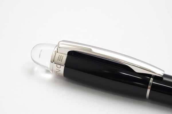 Phiên bản bút máy Montblanc Starwalker Platinum Resin mang vẻ đẹp thanh lịch và tinh tế, là một phụ kiện không thể thiếu cho những người trẻ năng động. Bút có kích thước rất vừa tay khi sử dụng nên phù hợp với mọi người dùng. Phần thân và nắp bút gia công từ hỗn hợp nhựa resin cao cấp màu đen bóng. Nắp bút đậy kiểu ren vặn. Logo ở đỉnh nắp là điểm độc đáo riêng của dòng Starwalker với logo Montblanc màu trắng nằm giữa khối nhựa trong suốt tạo ấn tượng như cánh hoa tuyết đang lơ lửng giữa khoảng không. Cài bút bằng hợp kim mạ platinum tạo dáng cong tinh tế, dãy series được khắc chi tiết gần chân cài. Ngòi bút chế tác từ vàng 14K mạ platinum có độ hoàn thiện cao, lưng ngòi có logo Montblanc chạm khắc tinh xảo, ngòi bút cỡ F cho ra nét chữ êm và trơn mượt khi viết. Bút sử dụng ống mực Montblanc tiêu chuẩn loại ngắn.