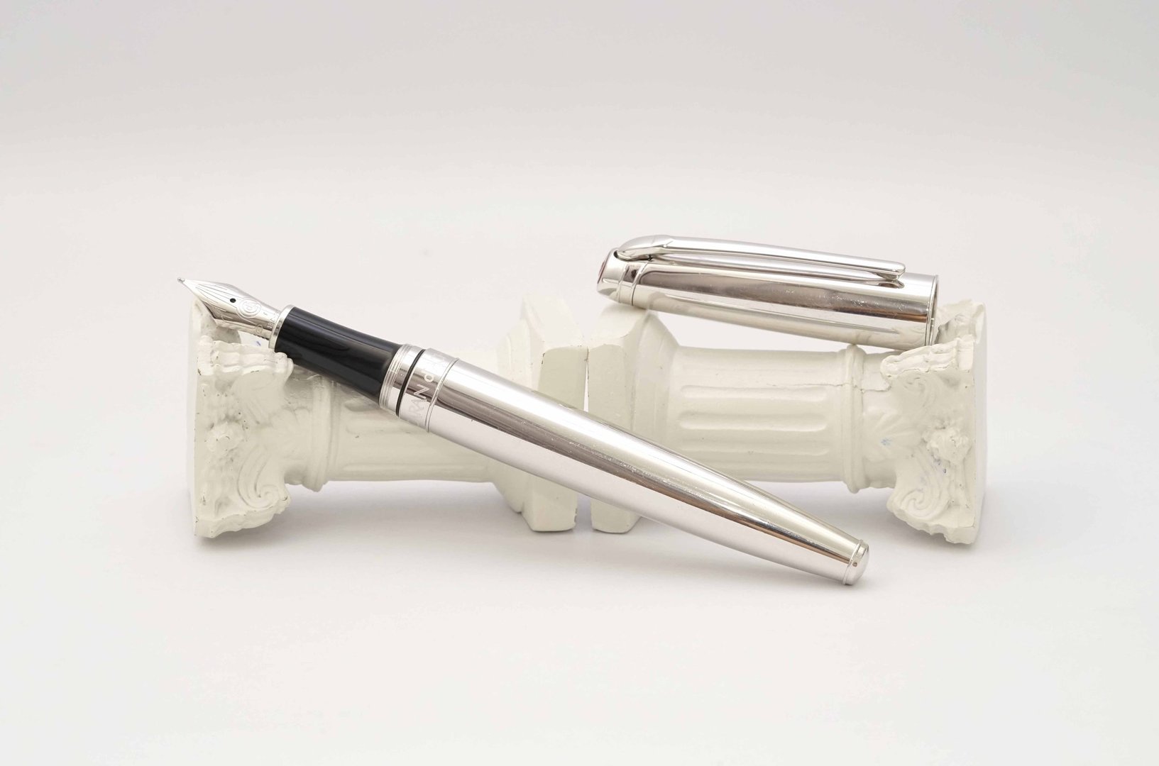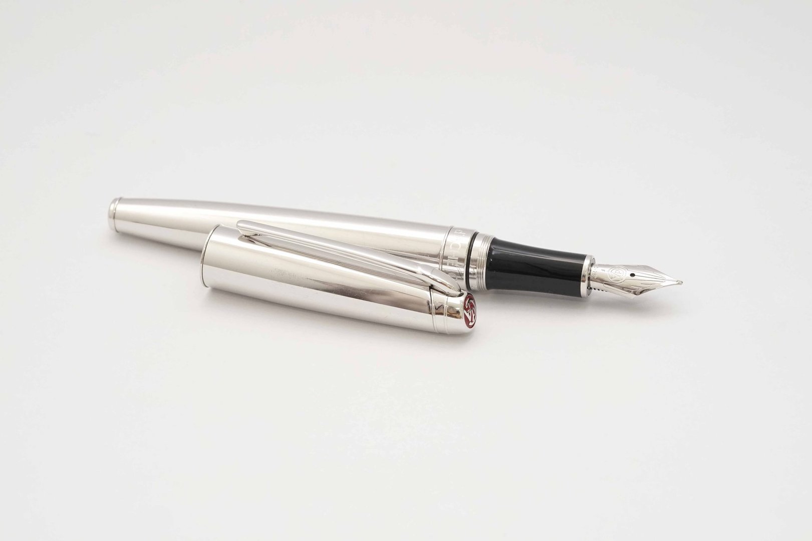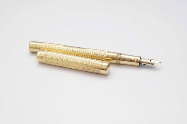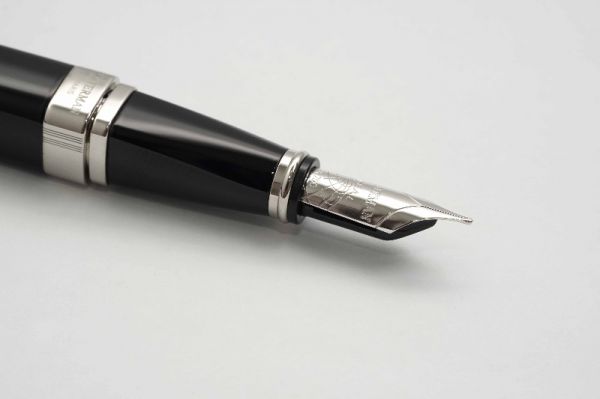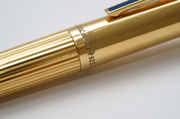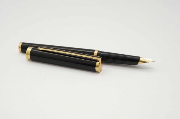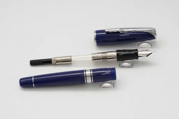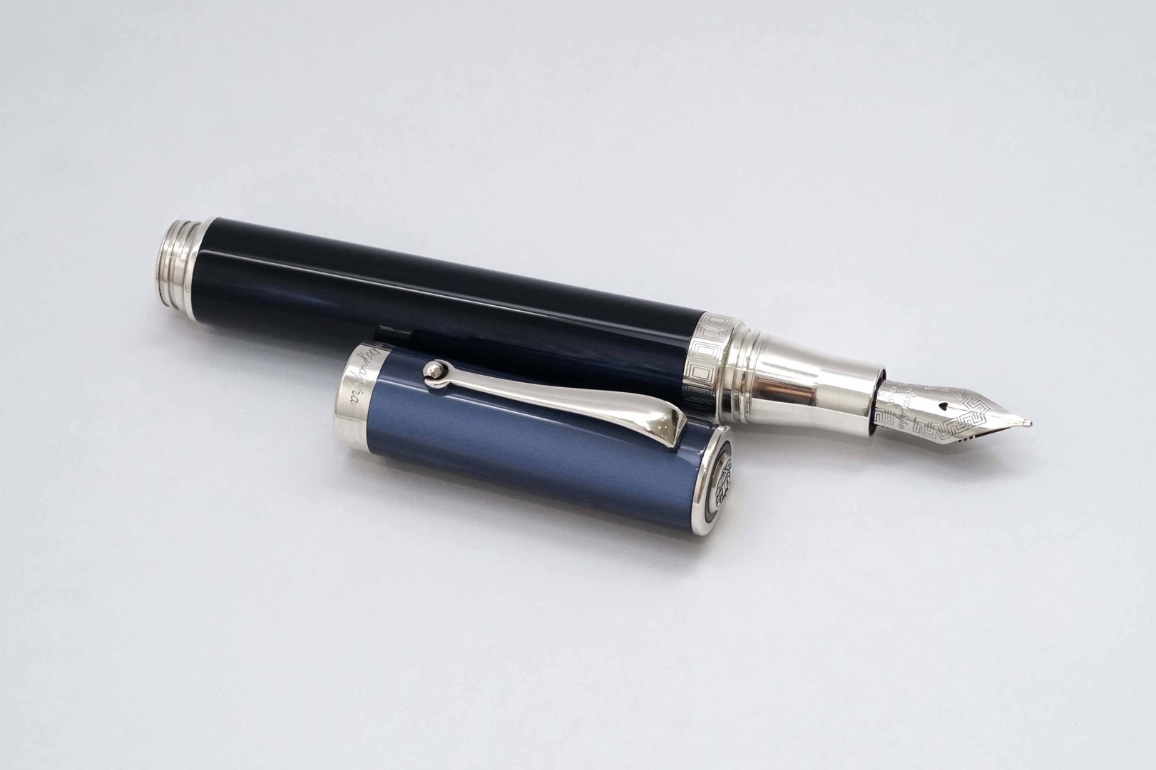 Bút máy Waterman Preface Blue Marble thuộc series “Preface” tầm trung của Waterman được tung ra thị trường giai đoạn những năm 1990s. Bút có thiết kế khá đẹp và thẩm mỹ với kích thước tiêu chuẩn nên phù hợp với đại đa số người dùng. Thân và nắp bút bằng hợp kim đồng sơn phủ lacquer màu xanh vân đá rất đẹp và sang trọng. Nắp bút đậy êm và chắc tay, vòng cap band viền nắp mạ vàng có khắc dòng chữ Waterman Made in France. Đỉnh nắp trang trí biểu tượng lục giác của Waterman. Cài bút bằng kim loại mạ vàng, tạo dáng góc cạnh tinh tế, đầu cài có đóng chìm ký hiệu W. Thân bút có chiều dài hợp lý nên khá cân đối khi sử dụng. Ngòi bút chế tác từ vàng 18K có độ hoàn thiện cao, lưng ngòi chạm khắc logo Waterman cùng nhiều hoa văn rất tinh xảo, ngòi bút cỡ M cho ra nét chữ êm và trơn mượt khi viết hoặc ký. Bút sử dụng ống mực loại tiêu chuẩn hoặc converter Waterman.