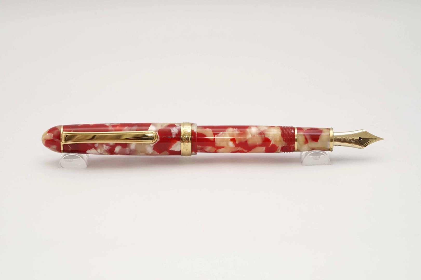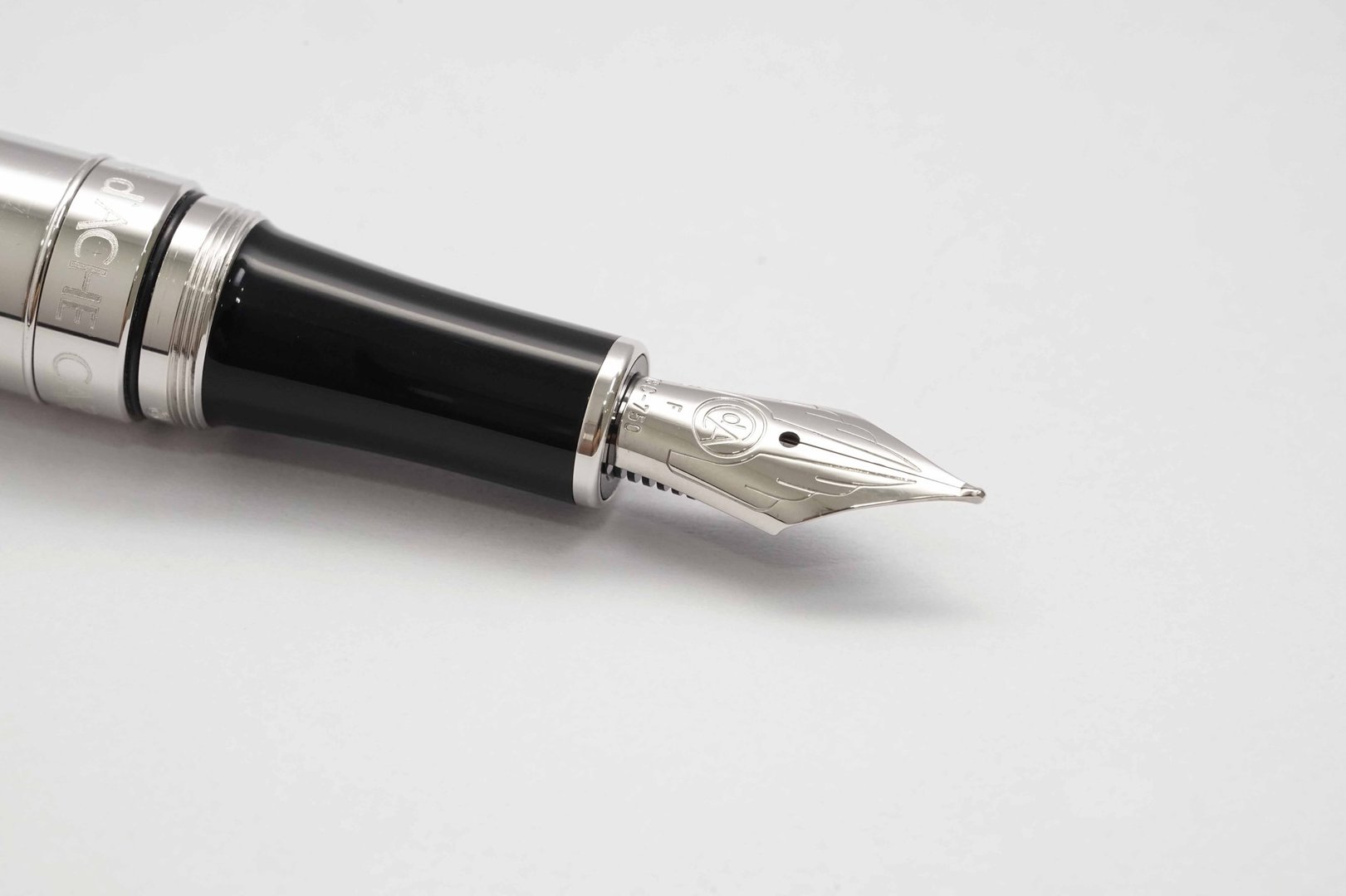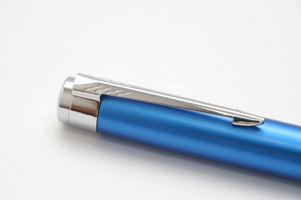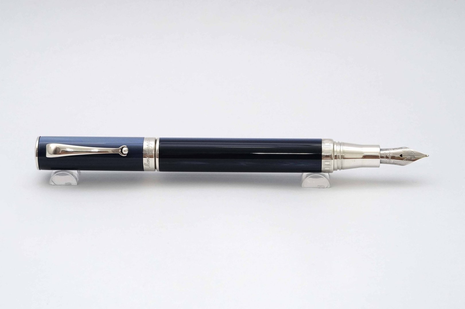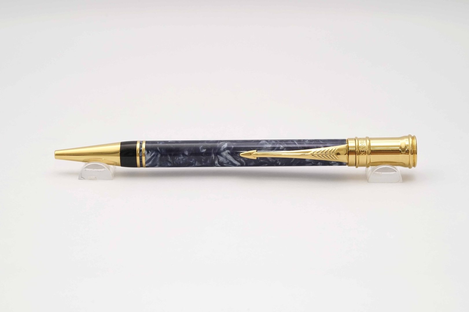 Bút máy Parker Duofold Centennial Blue Marble là phiên bản ra mắt vào năm 1987, đây là model tiêu biểu gắn liền với chiều dài lịch sử của dòng Duofold và cho đến ngày nay vẫn luôn giữ được sức hấp dẫn vượt thời gian. Bút có kích thước midsize và cầm khá đầm tay khi sử dụng. Vỏ bút gia công từ hỗn hợp nhựa resin cao cấp màu xanh vân đá cẩm thạch rất đẹp và có chiều sâu. Nắp bút đậy dạng ren vặn, cài bút bằng hợp kim mạ vàng 23K gia công theo hình dáng mũi tên Parker đặc trưng. Bút thuộc thế hệ first generation “Centennial Edition” nên đỉnh nắp không đính logo át bích như các dòng Duofold sau này. Ngòi bút bằng vàng 18K nét F dạng duo-tone, lưng ngòi trang trí hoa văn mũi tên và ký hiệu vàng 18K 750, ngòi bút được kiểm tra tỉ mỉ qua nhiều công đoạn để đảm bảo mang lại trải nghiệm viết tuyệt vời. Bút bơm mực bằng converter Parker đi kèm.