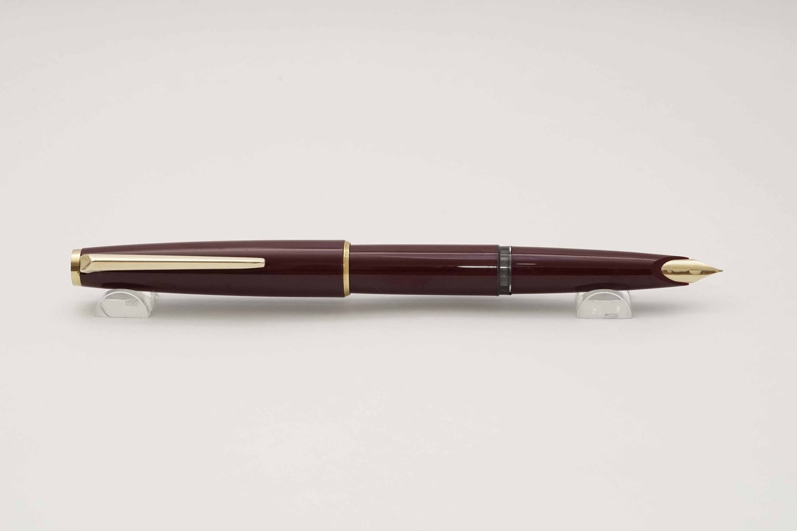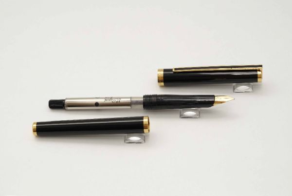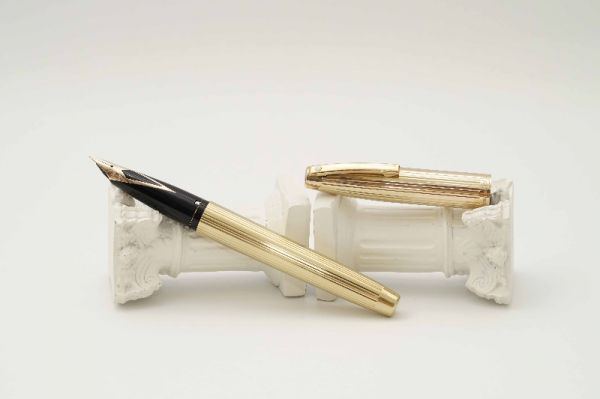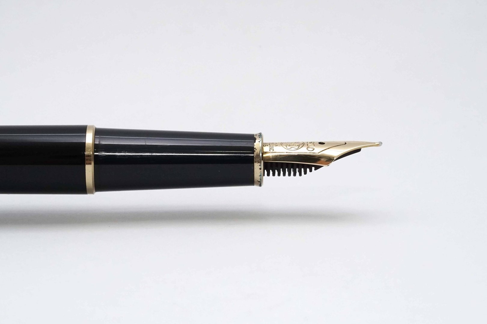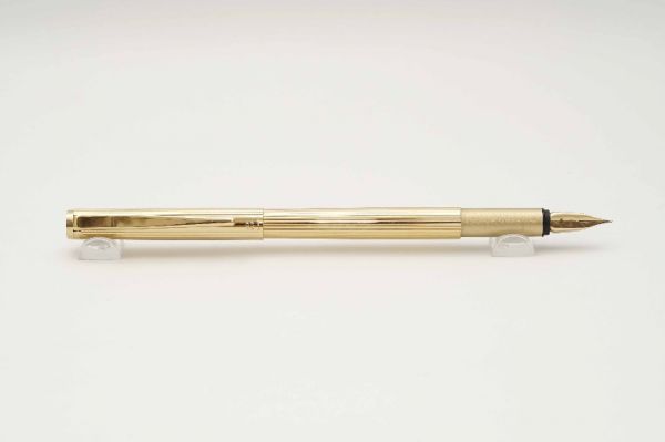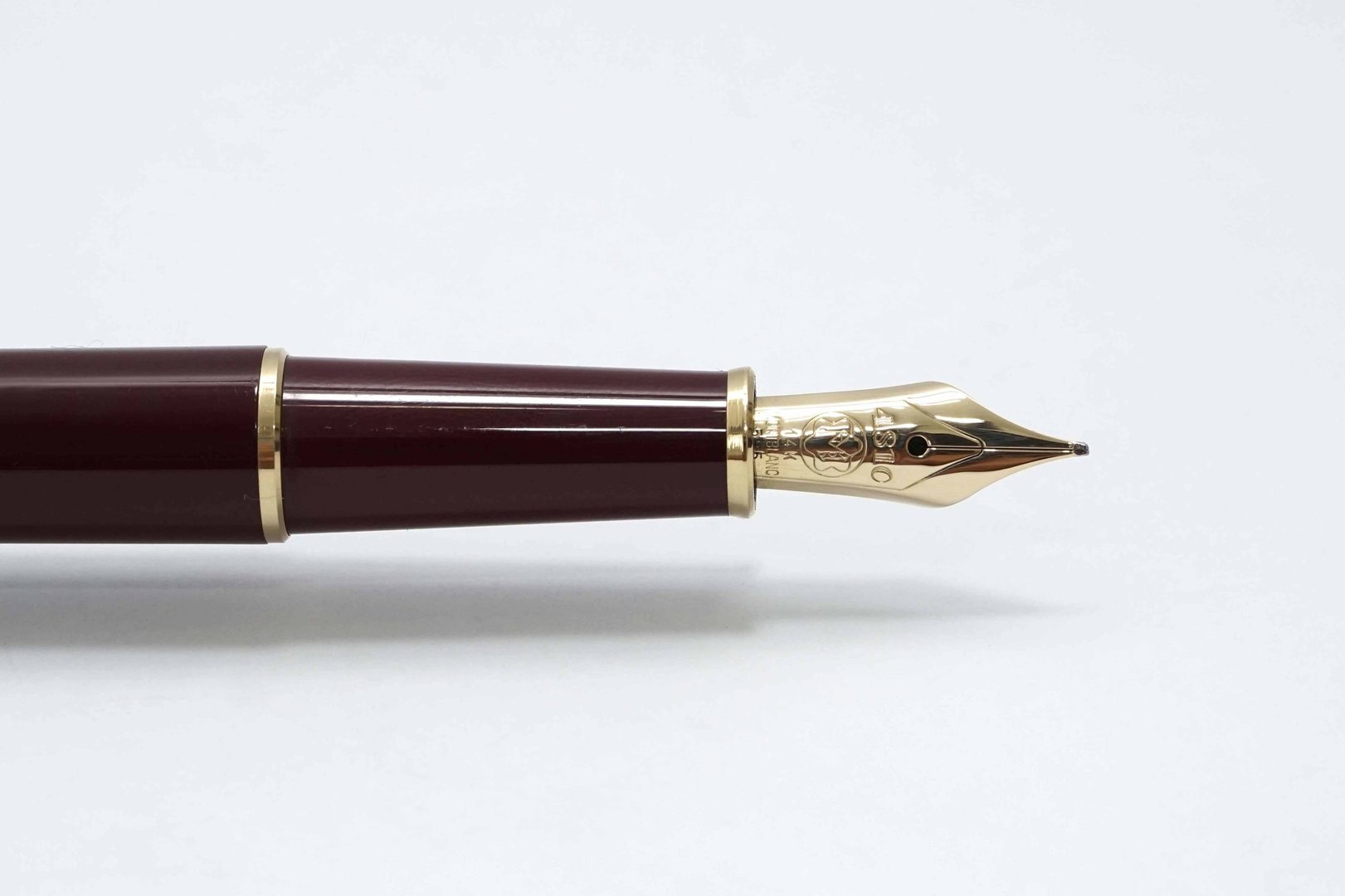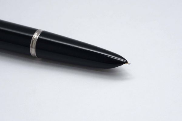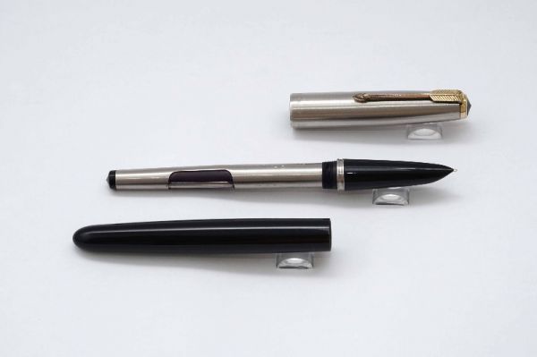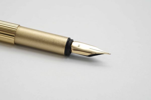 Bút máy Sheaffer Imperial Triumph 440 Blue Barrel được sản xuất trong những năm 1970s, bút có thiết kế khá đẹp với kích thước tiêu chuẩn nên phù hợp với mọi người dùng. Thân bút bằng hỗn hợp nhựa cao cấp màu xanh đậm. Nắp bút gia công từ hợp kim thép dạng brush steel, viền nắp có khắc dòng chữ Sheaffer – Made in USA. Thanh cài bằng kim loại mạ vàng, tạo dáng cong rất thẩm mỹ, đầu cài có chấm white dot đặc trưng của Sheaffer. Thân bút có chiều dài cân đối nên cầm rất thoải mái. Ngòi bút là điểm nhấn cho toàn bộ cây bút với lá ngòi kiểu inlaid được khảm liền lạc với section, ngòi bút chế tác từ vàng 14K, lưng ngòi có khắc ký hiệu Sheaffer 14K 585 USA, ngòi bút cỡ F cho ra nét chữ trơn mượt khi viết. Bút bơm mực bằng piston cao su đi kèm.