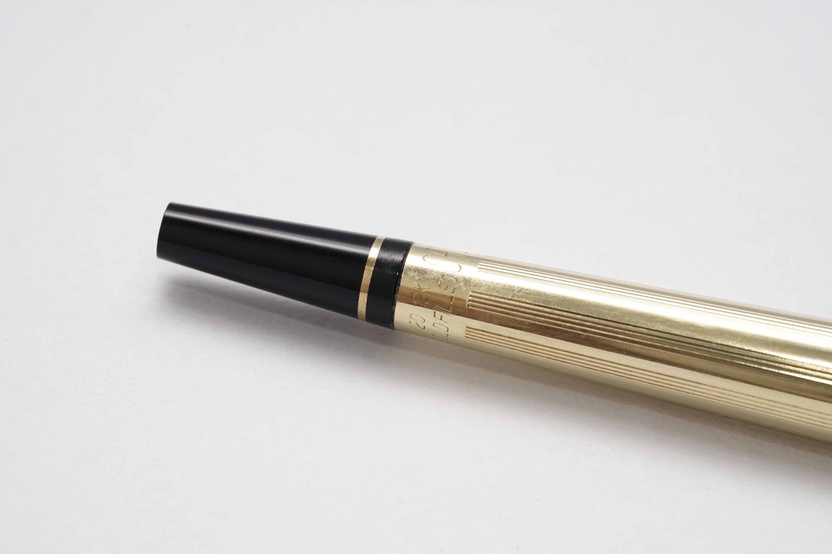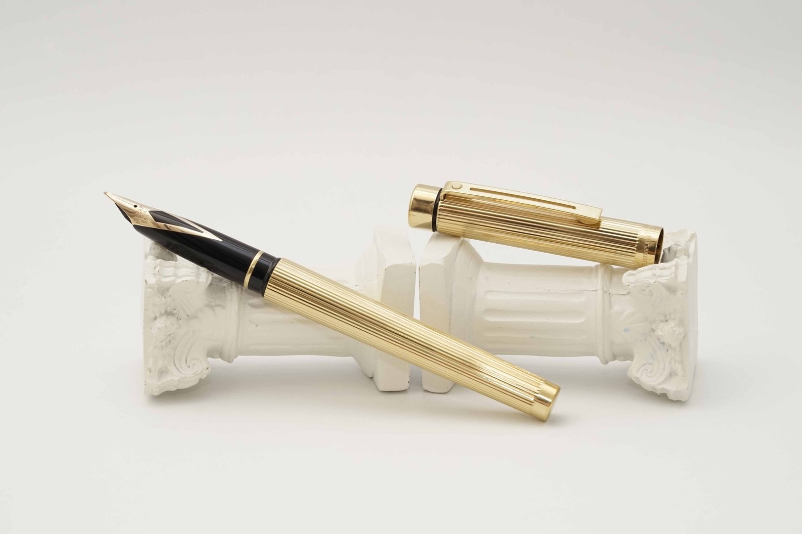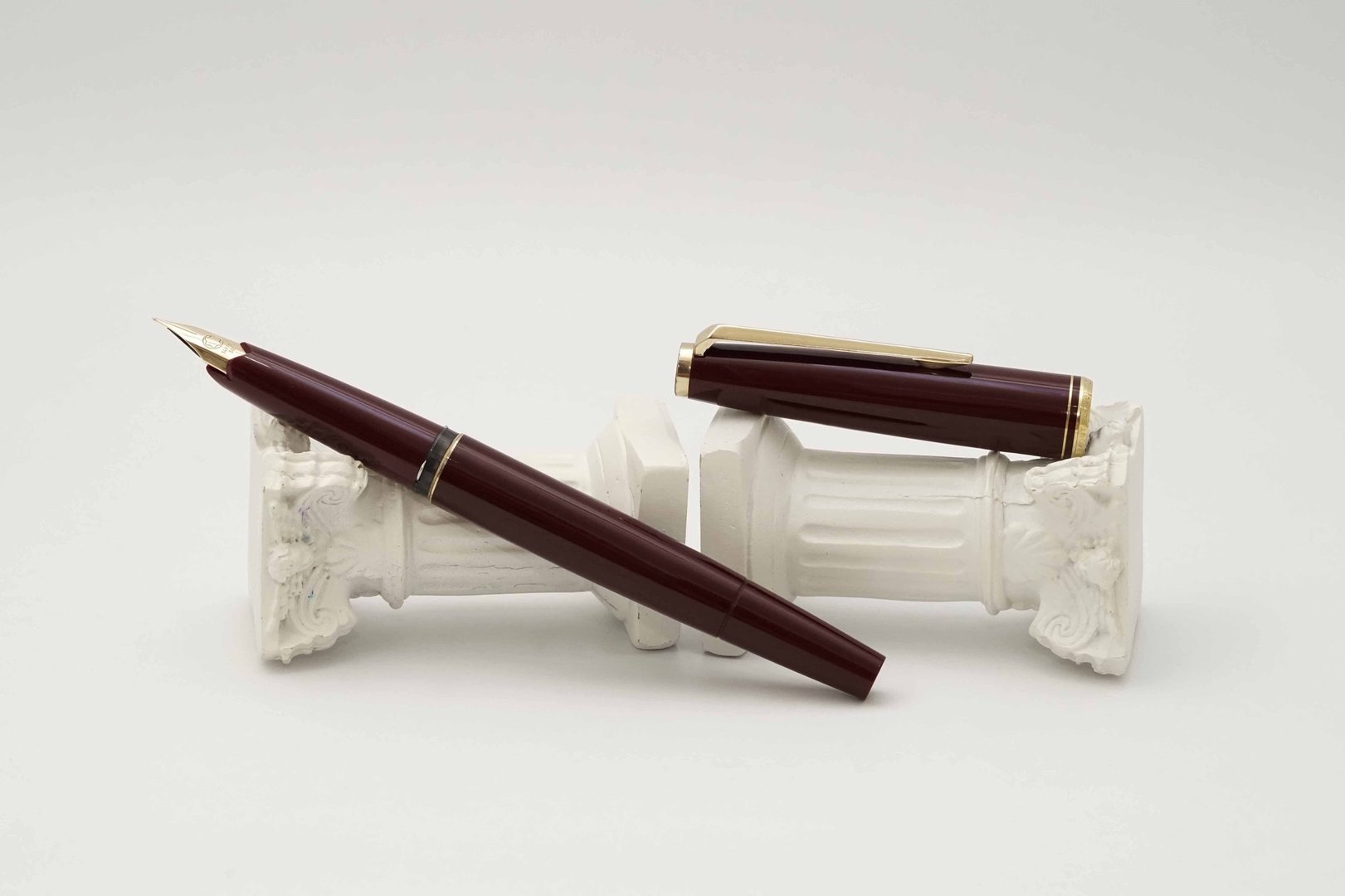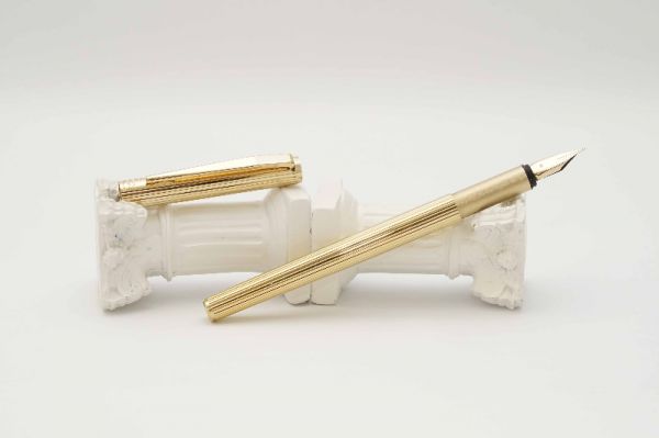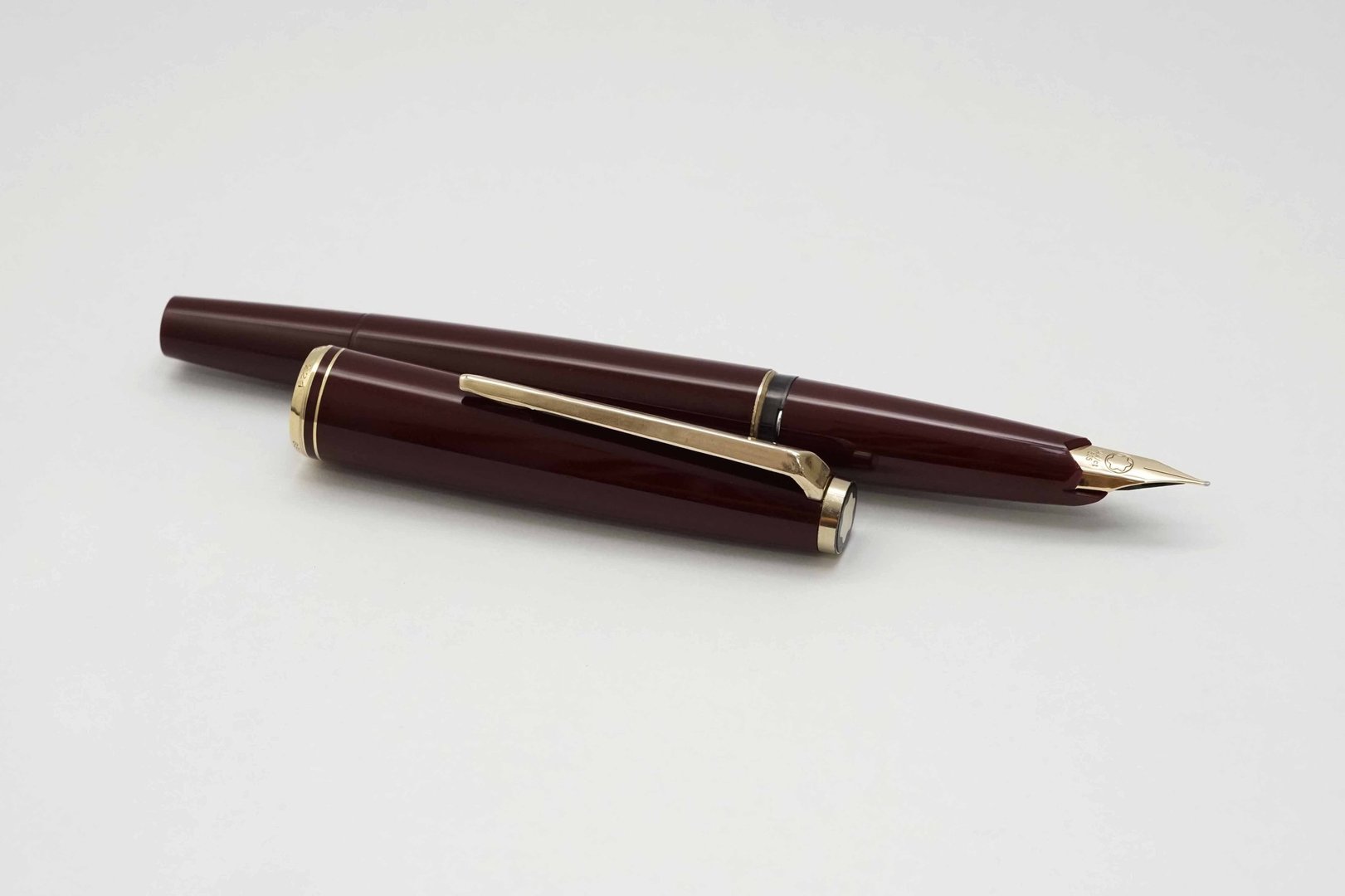 Bút máy Sheaffer Imperial Triumph 440 Blue Barrel được sản xuất trong những năm 1970s, bút có thiết kế khá đẹp với kích thước tiêu chuẩn nên phù hợp với mọi người dùng. Thân bút bằng hỗn hợp nhựa cao cấp màu xanh đậm. Nắp bút gia công từ hợp kim thép dạng brush steel, viền nắp có khắc dòng chữ Sheaffer – Made in USA. Thanh cài bằng kim loại mạ vàng, tạo dáng cong rất thẩm mỹ, đầu cài có chấm white dot đặc trưng của Sheaffer. Thân bút có chiều dài cân đối nên cầm rất thoải mái. Ngòi bút là điểm nhấn cho toàn bộ cây bút với lá ngòi kiểu inlaid được khảm liền lạc với section, ngòi bút chế tác từ vàng 14K, lưng ngòi có khắc ký hiệu Sheaffer 14K 585 USA, ngòi bút cỡ F cho ra nét chữ trơn mượt khi viết. Bút bơm mực bằng piston cao su đi kèm.