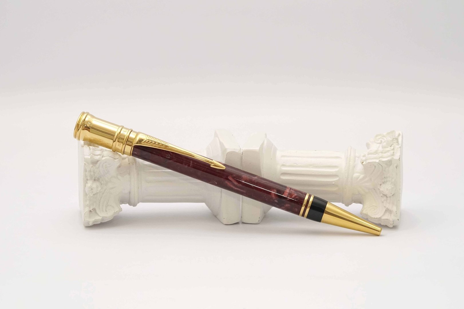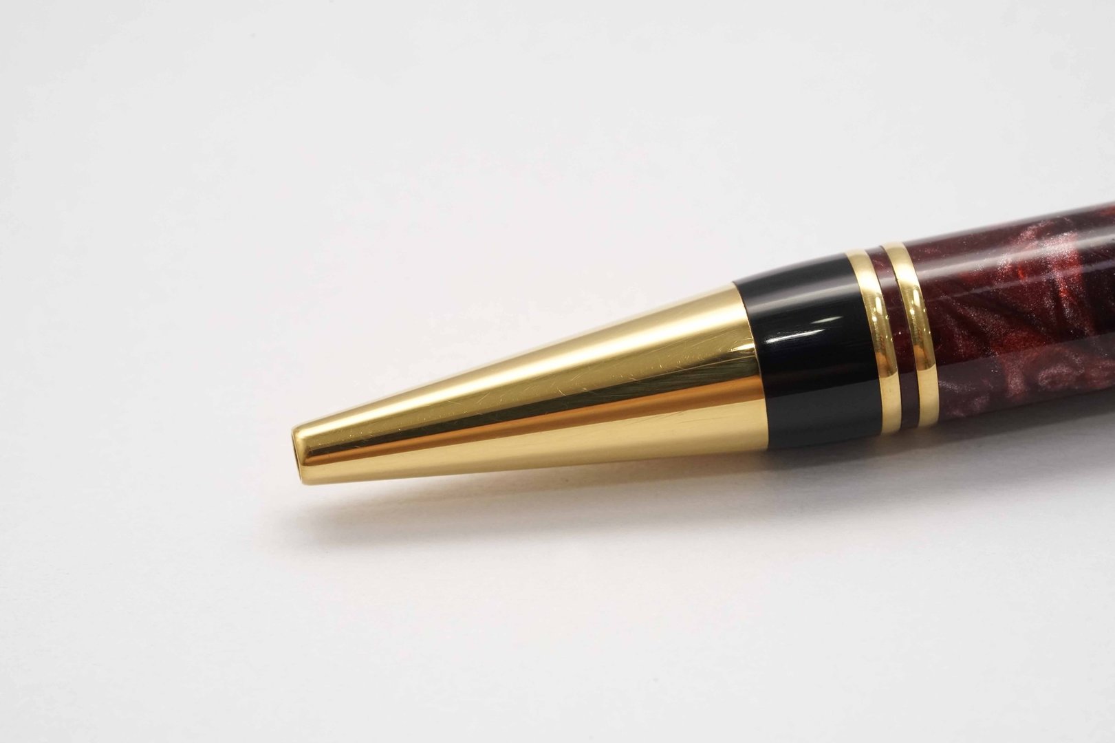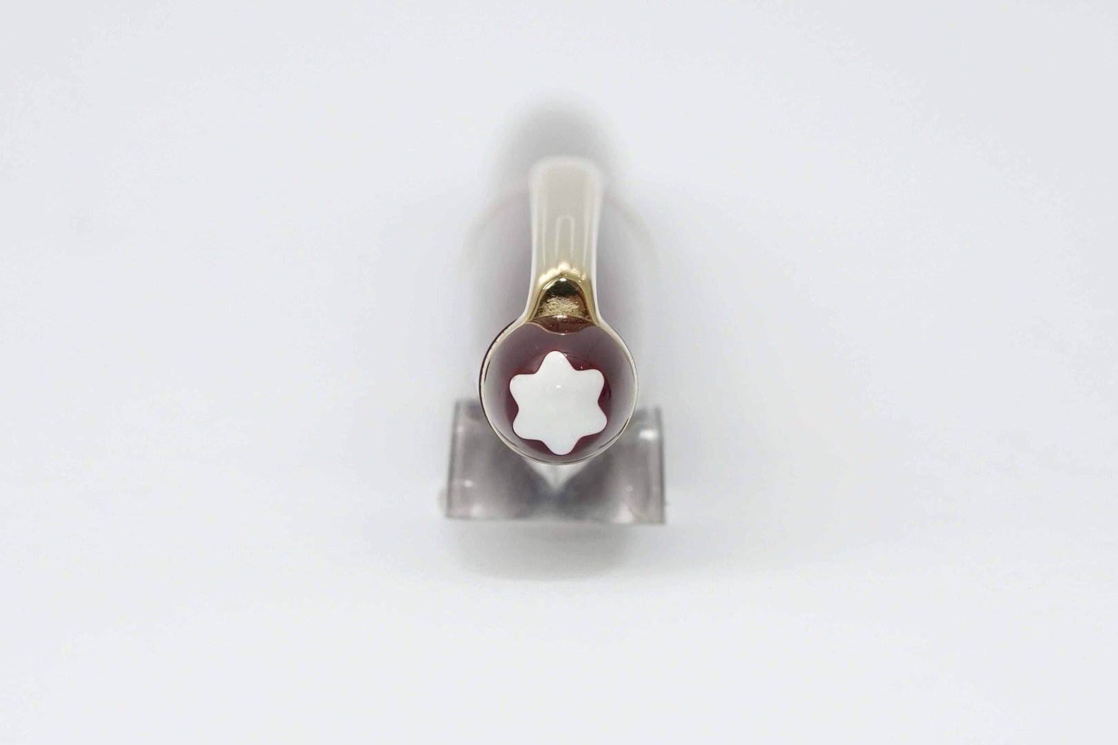 Thuộc series Meisterstuck 164 sản xuất tại Đức từ năm 1990 – 1999, bút bi xoay Montblanc Meisterstuck 164R Bordeaux có kích thước tiêu chuẩn cùng kiểu dáng unisex nên phù hợp với mọi người dùng. Phần thân và nắp bút được gia công từ hỗn hợp nhựa resin cao cấp màu đỏ bordeaux bắt mắt. Bút hoạt động với cơ chế xoay nắp rất êm tay, đỉnh nắp có trang trí logo hoa tuyết nhỏ màu trắng, vòng capband viền nắp có khắc dòng chữ Montblanc Meisterstuck. Thanh cài bằng hợp kim mạ vàng và được liên kết chắc chắn với nắp bút. Bút đi kèm ruột bi màu đen.