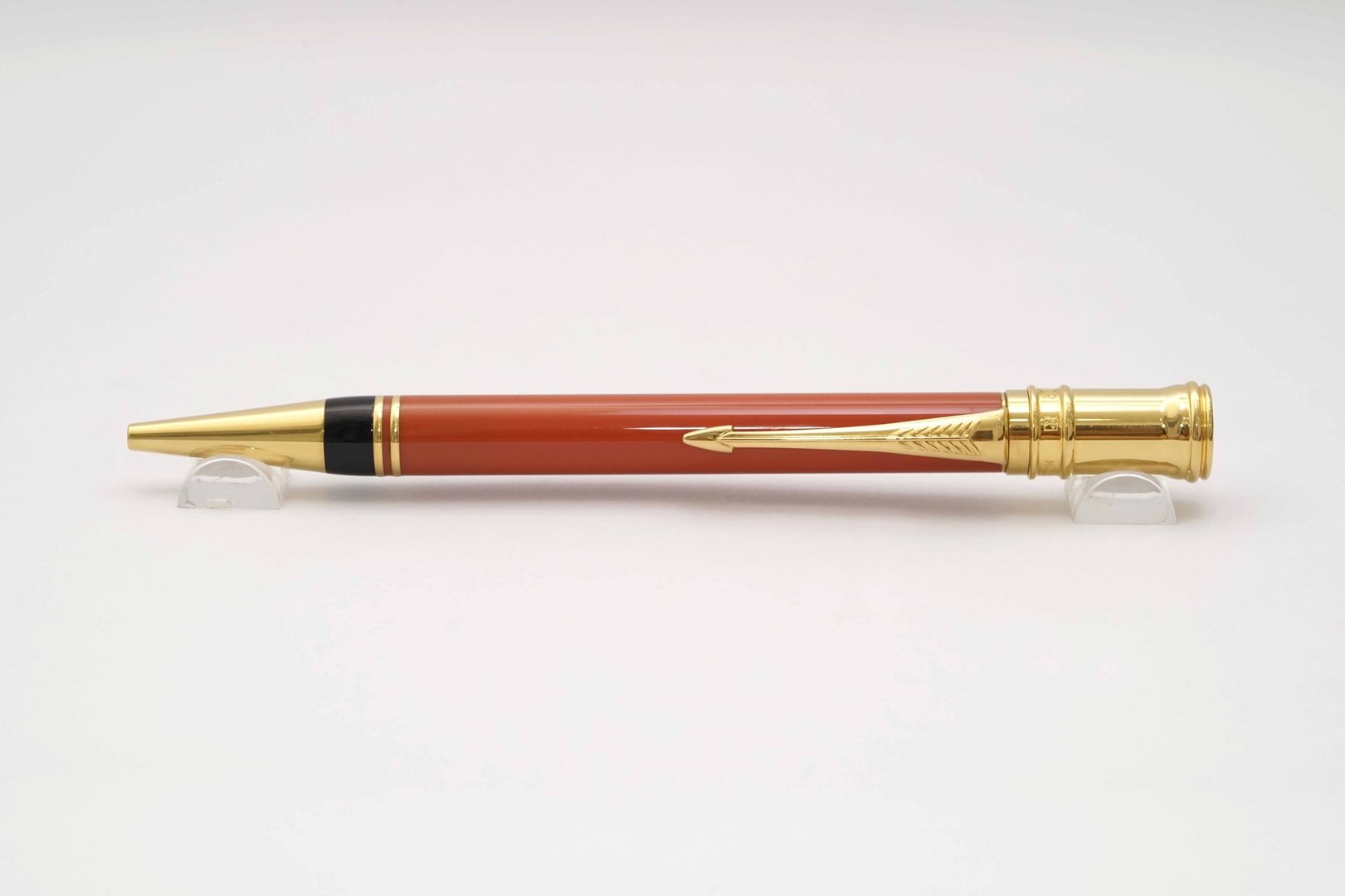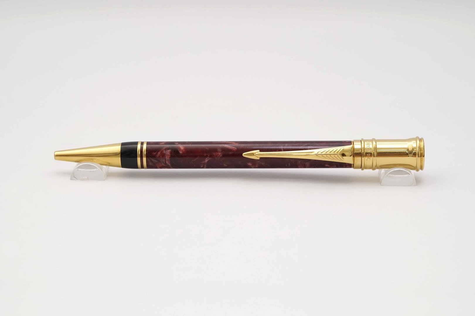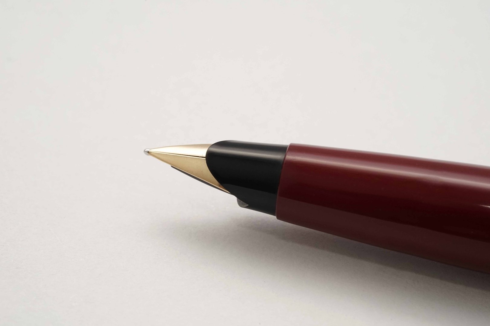 Thuộc series Meisterstuck 164 sản xuất tại Đức từ năm 1990 – 1999, bút bi xoay Montblanc Meisterstuck 164R Bordeaux có kích thước tiêu chuẩn cùng kiểu dáng unisex nên phù hợp với mọi người dùng. Phần thân và nắp bút được gia công từ hỗn hợp nhựa resin cao cấp màu đỏ bordeaux bắt mắt. Bút hoạt động với cơ chế xoay nắp rất êm tay, đỉnh nắp có trang trí logo hoa tuyết nhỏ màu trắng, vòng capband viền nắp có khắc dòng chữ Montblanc Meisterstuck. Thanh cài bằng hợp kim mạ vàng và được liên kết chắc chắn với nắp bút. Bút đi kèm ruột bi màu đen.