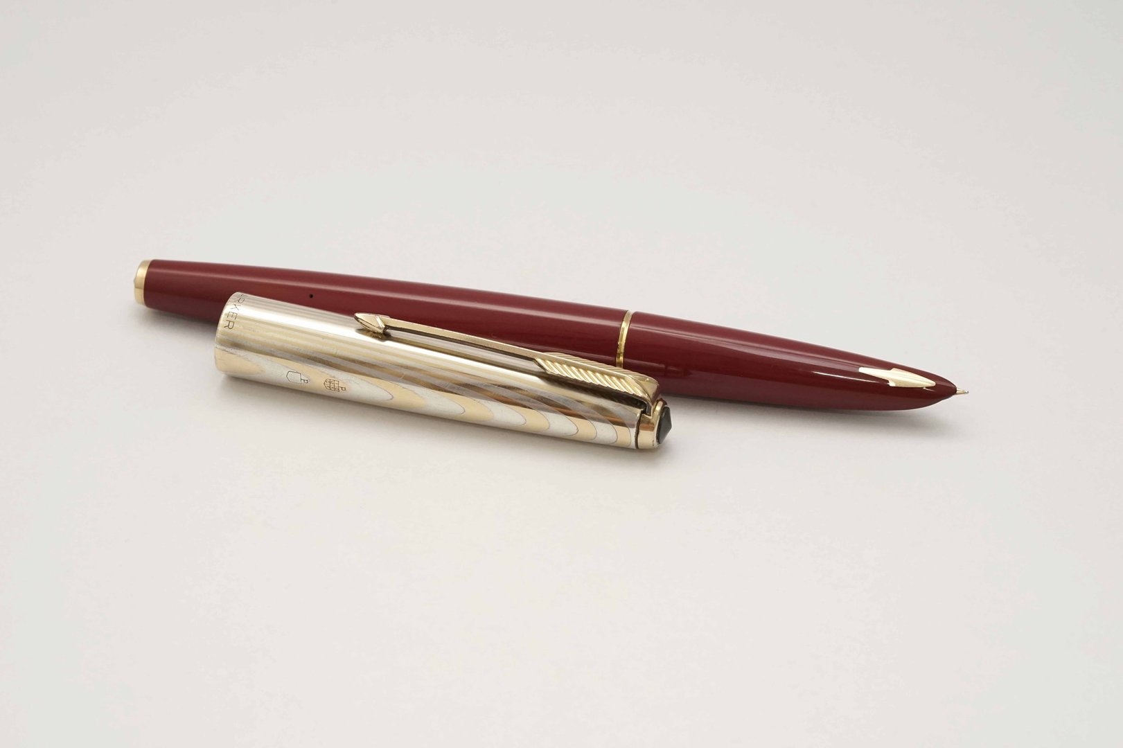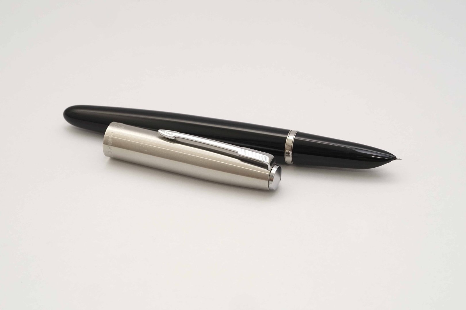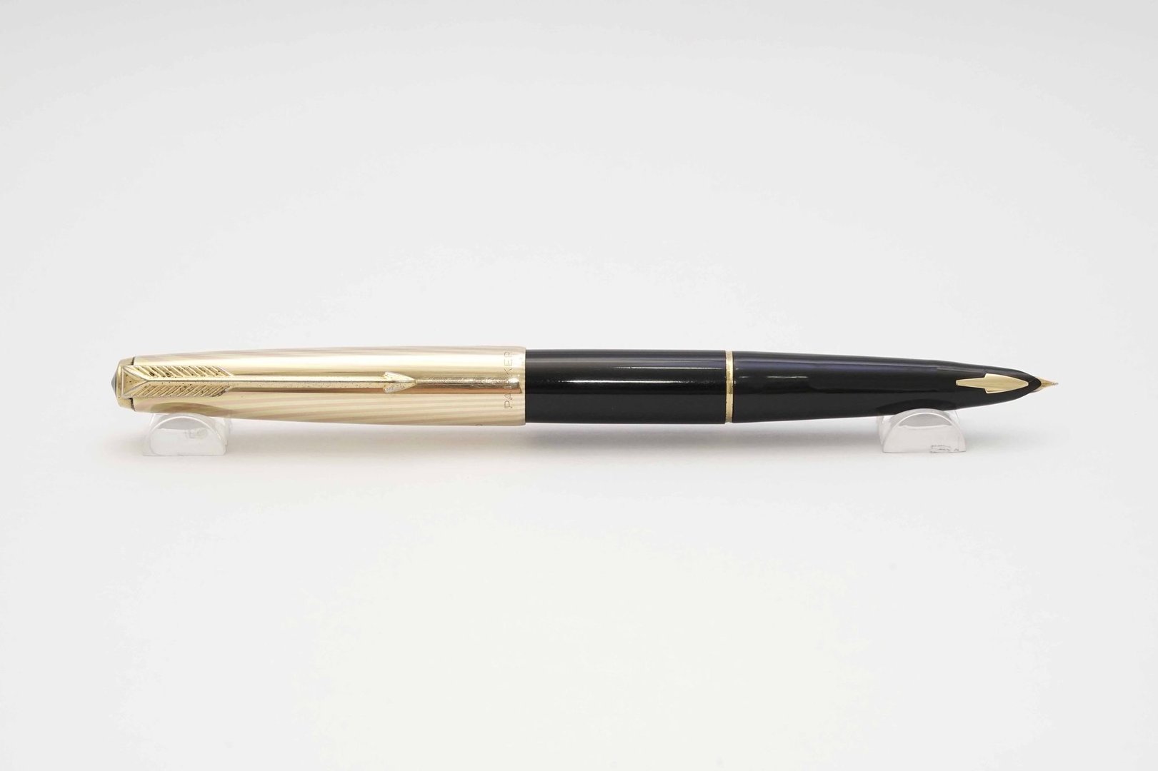 Bút máy Parker 51 Tea Blue & Rolled Gold Cap là phiên khá bản đẹp và tiêu biểu của series Parker 51, bút có kích thước tiêu chuẩn nên phù hợp mọi cỡ tay người dùng. Thân bút bằng hỗn hợp nhựa cứng màu xanh tea blue bắt mắt. Nắp bút bằng hợp kim bọc vàng 12K rất dày và đậy êm tay nhờ bộ đệm bên trong, đỉnh nắp trang trí hạt jewell bằng nhựa màu đen, viền nắp khắc logo Parker và dòng chữ Made in USA 1/10 12K Gold Filled. Thanh cài bằng hợp kim bọc vàng được tạo hình mũi tên Parker truyền thống. Điểm khác biệt và dễ nhận diện giữa Parker 51 so với các dòng Parker khác là cụm ngòi và feed nằm ẩn bên trong section, phần feed có nhiều lá điều tiết mực và là cầu nối với ống dẫn nằm bên trong piston, cơ cấu khép kín này giúp bơm và điều tiết dòng mực rất nhanh để cho ra nét chữ liền mạch, ngòi không bị khô mực và sẵn sàng viết bất kỳ lúc nào so với kiểu ngòi hở thông thường. Ngòi bút bằng vàng 14K nét M cho ra nét chữ êm mượt khi viết. Bút bơm mực bằng cơ chế Aerometric filling system với piston cao su zin đi kèm.