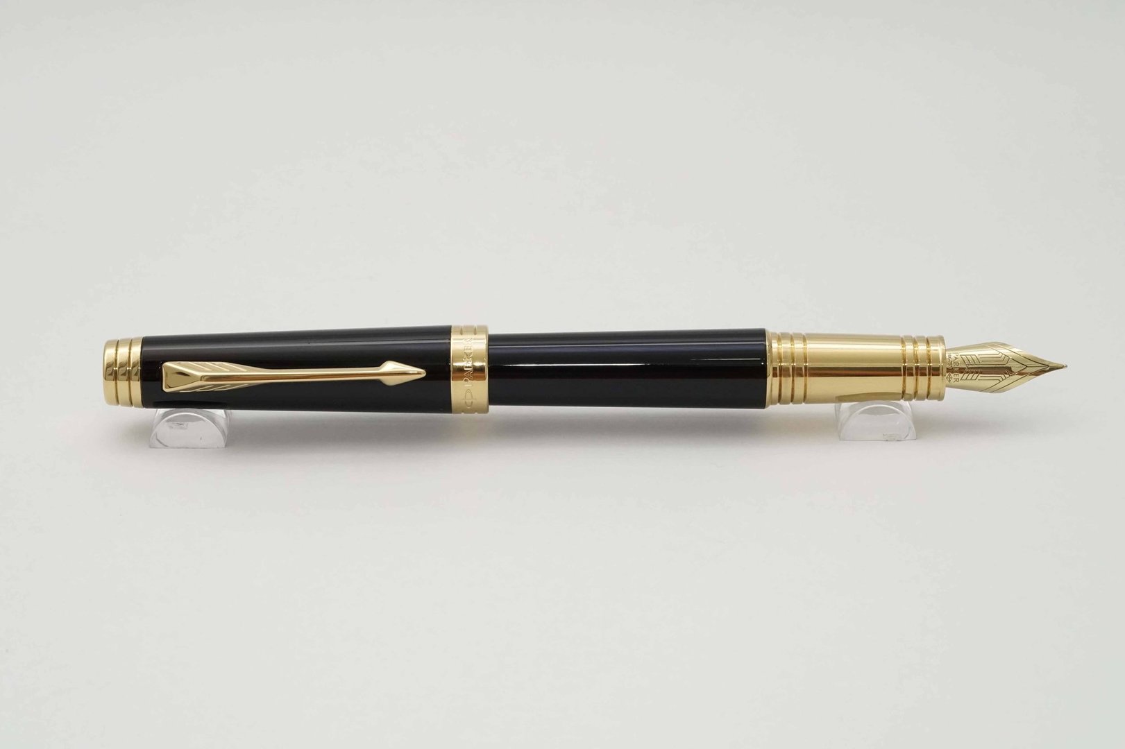 Kể từ phiên bản Parker Premier xuất hiện lần đầu vào năm 2009, thì đến nay Parker Premier 09 Black Lacquer đã trở thành model kinh điển khi hội tụ đủ các yếu tố thẩm mỹ và chất lượng. Bút có kích thước fullsize với thiết kế góc cạnh nam tính. Thân và nắp bút làm từ hợp kim nên cầm rất đầm tay, bề mặt vỏ bút tạo điểm nhấn với lớp lacquer màu đen bóng sang trọng. Thanh cài bằng thép mạ vàng tạo hình mũi tên Parker hiện đại và cứng cáp. Nắp bút đậy êm tay, vòng ring viền nắp mạ vàng có khắc logo Parker. Thân có chiều cân đối tạo cảm giác thoải mái khi sử dụng. Phần section bằng kim loại mạ vàng. Ngòi bút gia công từ vàng 18K, lưng ngòi chạm khắc hoa văn mũi tên cách điệu kèm logo Parker và dấu hallmark nhỏ. Bút bơm mực bằng converter cao cấp đi kèm.