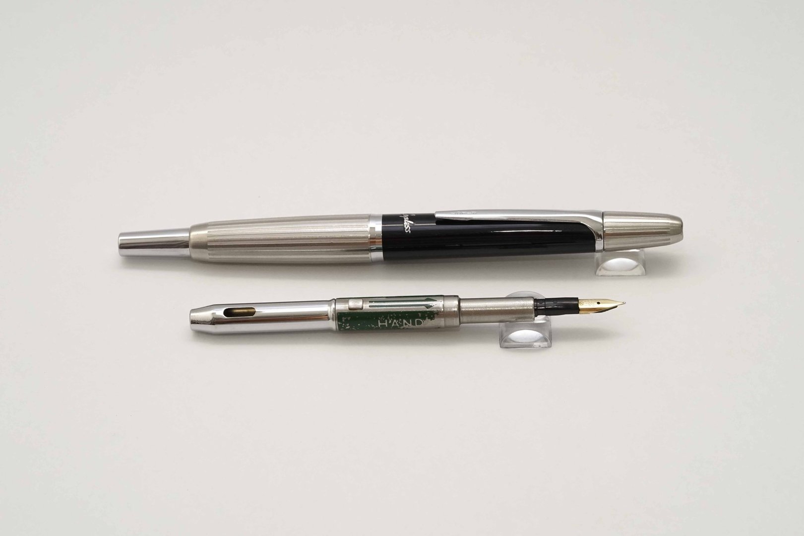 Tổng thể bút là hàng đã qua sử dụng, ở tình trạng 97%, bút kèm hộp và đang hoạt động tốt.