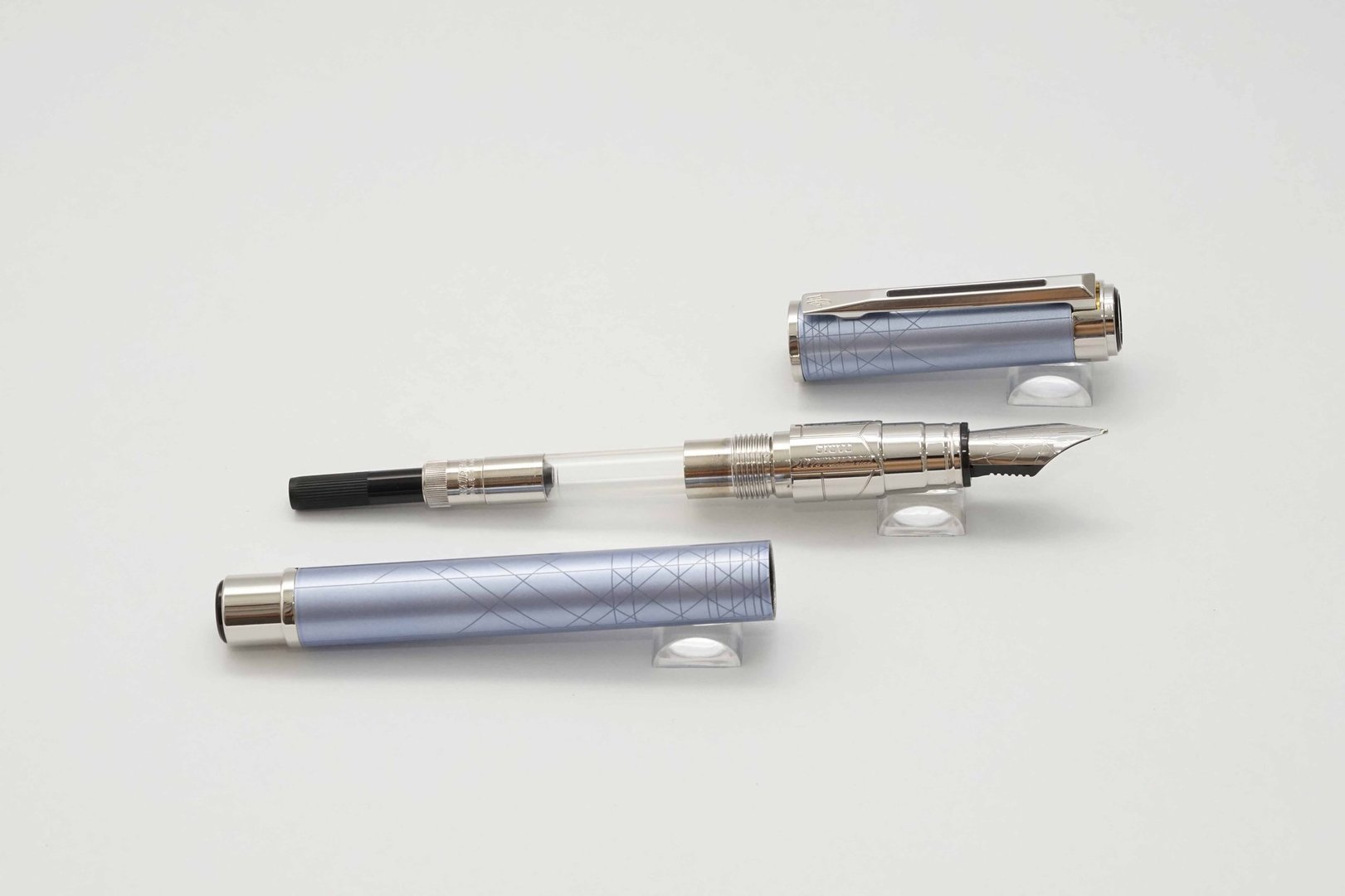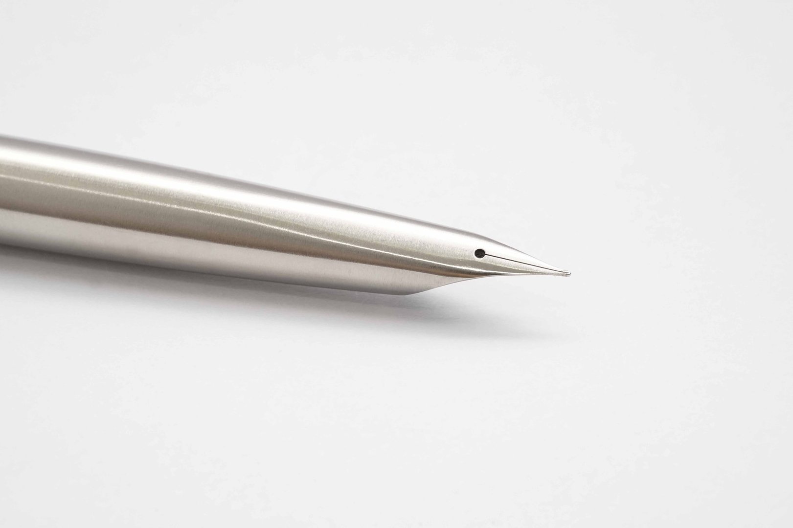 Pilot Myu 701 Stainless Steel được đánh giá là cây bút đi trước thời đại bởi cấu tạo ngòi liền thân độc đáo, được sản xuất dựa trên các tiêu chuẩn khắc khe của hãng Pilot với chất liệu chủ đạo là hợp kim thép không rỉ có độ bền cao. Bút thuộc dạng pocket nhỏ gọn nên dễ mang đi, phù hợp cho những ai thường xuyên di chuyển. Phần nắp khá dài, chiếm phần lớn chiều dài cây bút, việc này tạo sự thoải mái và tiện dụng khi gắn nắp ra sau lúc sử dụng. Điểm nhấn đặc sắc là ngòi bút và thân bút là một khối liền lạc mang đến cảm xúc vô tận cho người dùng. Ngòi bút cỡ F cho ra nét chữ khá mảnh và bám giấy khi viết. Bút sử dụng ống mực hoặc converter Pilot size 40.