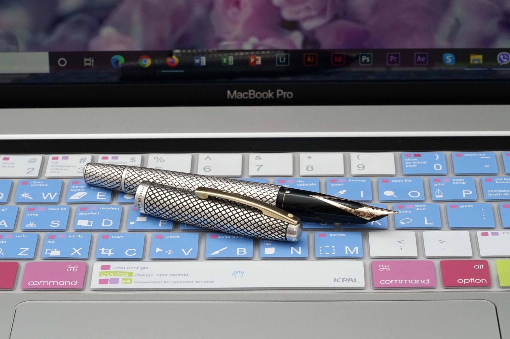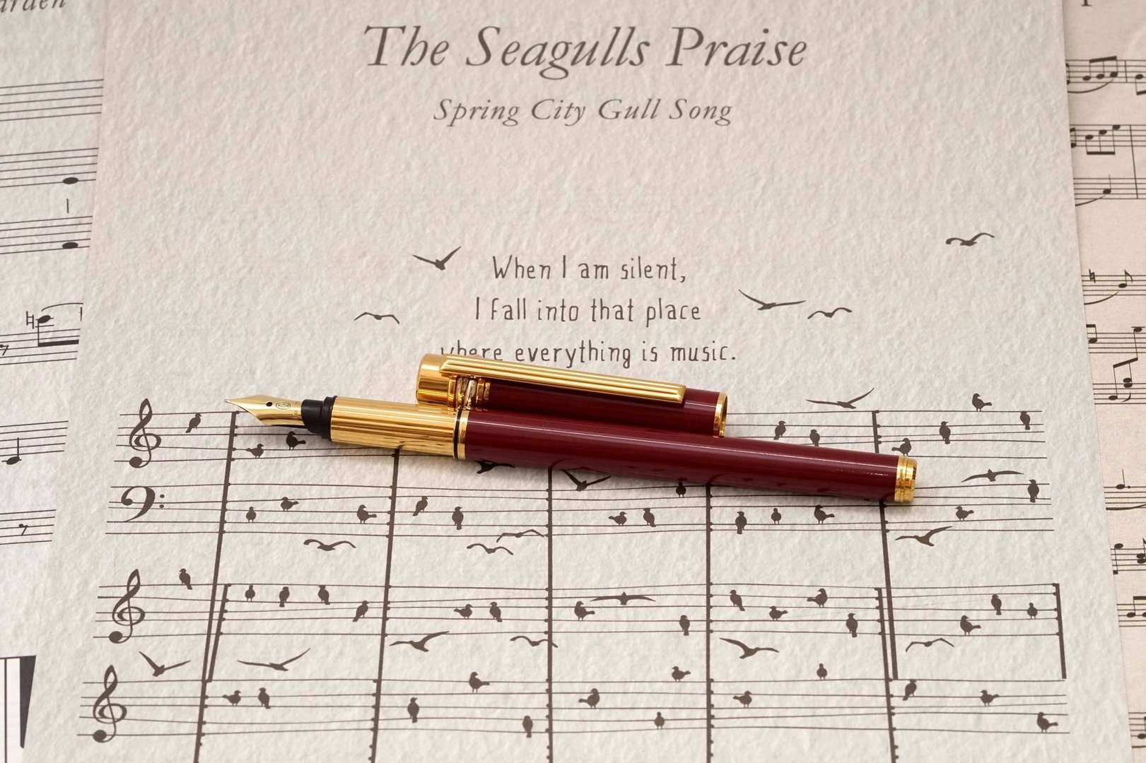 Phiên bản bút máy Waterman Carene Silver Meridian là model đương đại thuộc series Carene cao cấp ra mắt thị trường những năm 2000s và được lấy cảm hứng từ hình dáng chiếc du thuyền sang trọng. Bút có kích thước midsize nên cầm rất vừa tay khi sử dụng. Thân và nắp bút bằng hợp kim mạ bạc, bề mặt vỏ bút được hoàn thiện bằng các hoa văn guilloche tinh tế. Nắp bút đậy êm và chắc tay, viền nắp có khắc chìm chữ Waterman. Cài bút bằng kim loại mạ bạc được tạo dáng uốn lượn rất thẩm mỹ và tinh tế, đầu cài có đóng chìm logo W. Cụm ngòi là điểm nhấn chính của dòng Carene với lá ngòi kiểu inlaid được khảm liền lạc với cụm section, ngòi bút chế tác từ vàng 18K mạ rhodium rất tinh xảo, lưng ngòi khắc logo Wateraman và ký hiệu vàng 750, ngòi bút cỡ F cho ra nét chữ trơn mượt khi viết. Bút bơm mực bằng converter Waterman đi kèm.