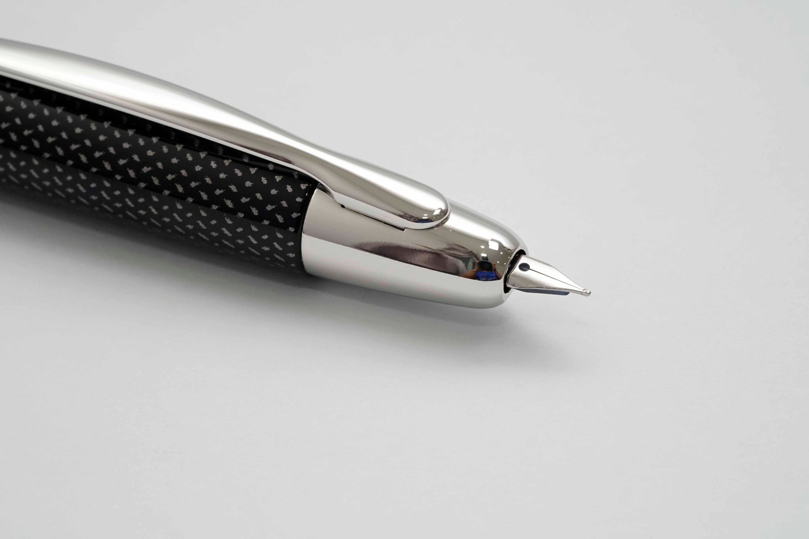 Phiên bản bút máy Pilot Capless Vanishing Point Black Carbonesque thuộc series carbonesque được tung ra thị trường vào tháng 10/2000 và vẫn sản xuất kéo dài cho đến nay. Đây là model được đánh giá cao về độ thẩm mỹ với lớp vỏ sơn mài Black Carbonesque nổi bật. Bút có kích thước midsize nên cầm rất vừa tay. Thân và nắp bút bằng kim loại với vỏ ngoài hoàn thiện bởi lớp sơn mài màu đen bóng xen kẽ là các đốm bạc ngẫu nhiên tạo ra tone màu bắt mắt. Cài bút và phần tay cầm mạ rhodium. Ngòi bút gia công từ vàng 18K nét F, toàn bộ phần ngòi sẽ ẩn vào trong khi ấn nhả đuôi bút, việc này giúp hạn chế tình trạng mực bị khô hoặc bay hơi sau khi sử dụng. Bút đi kèm ống mực Pilot tiêu chuẩn.