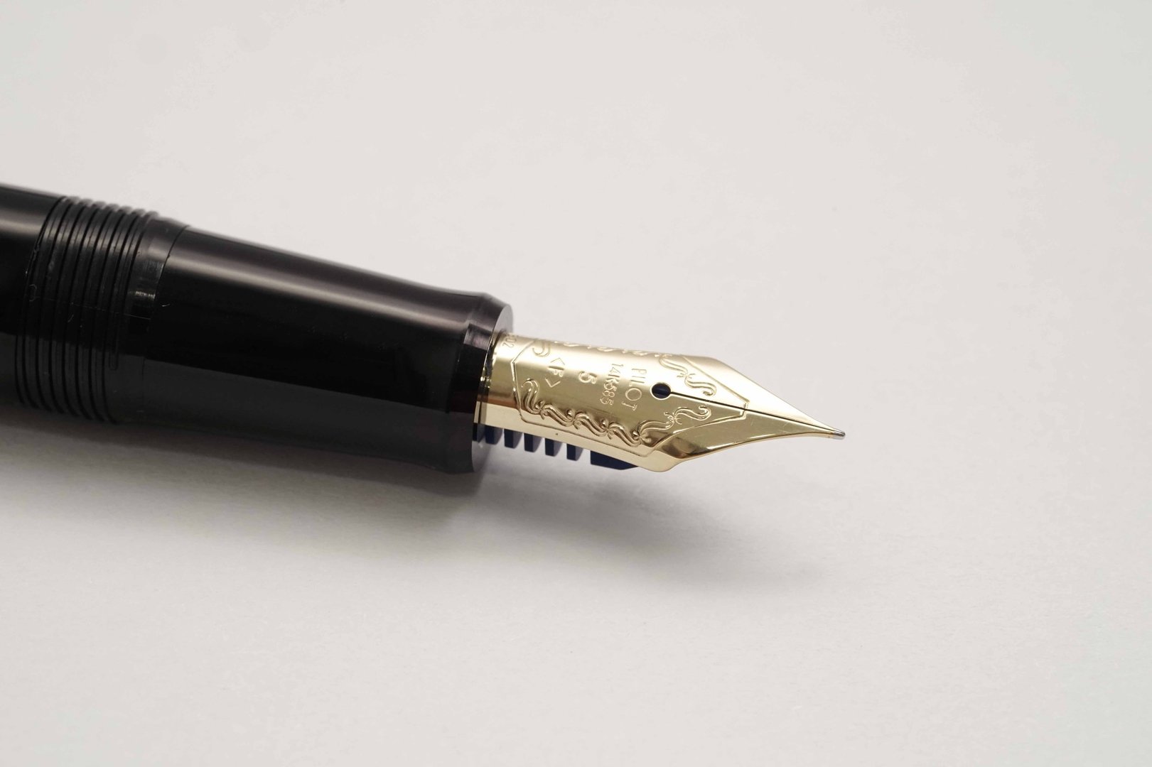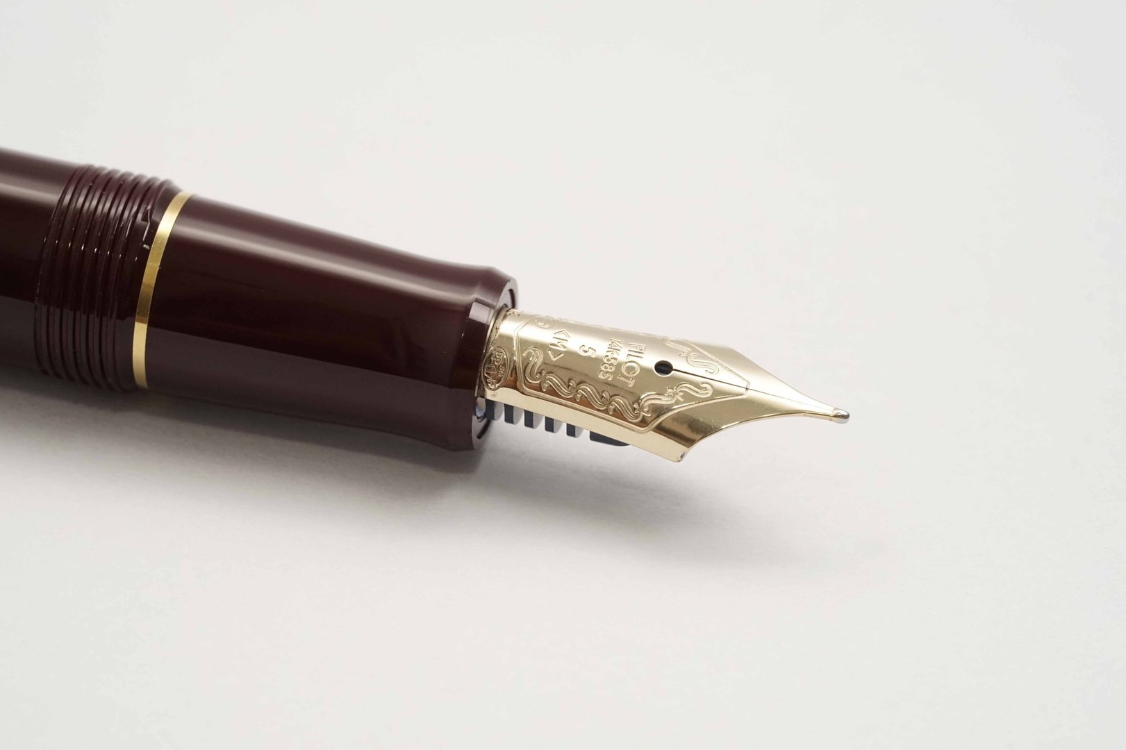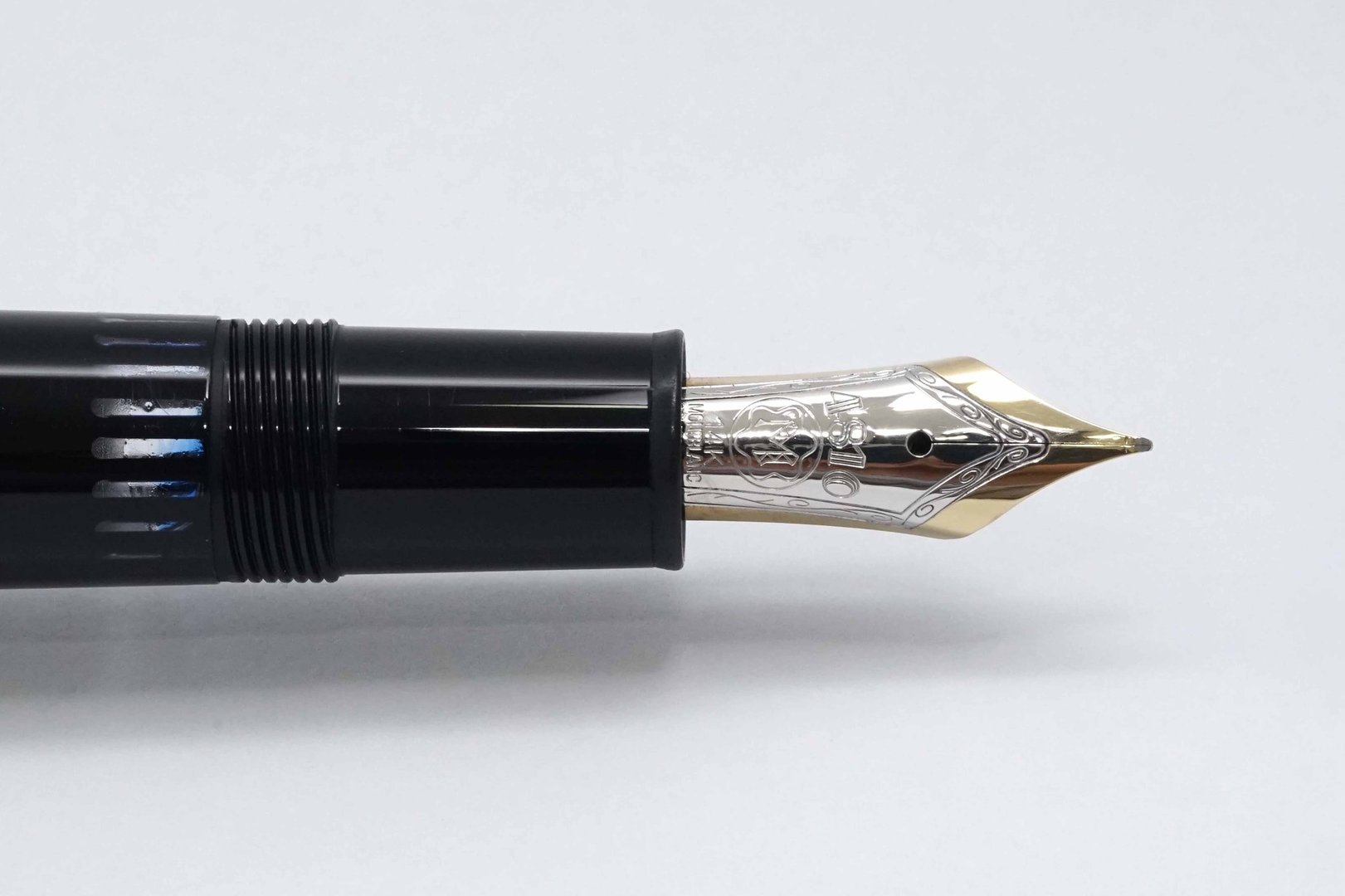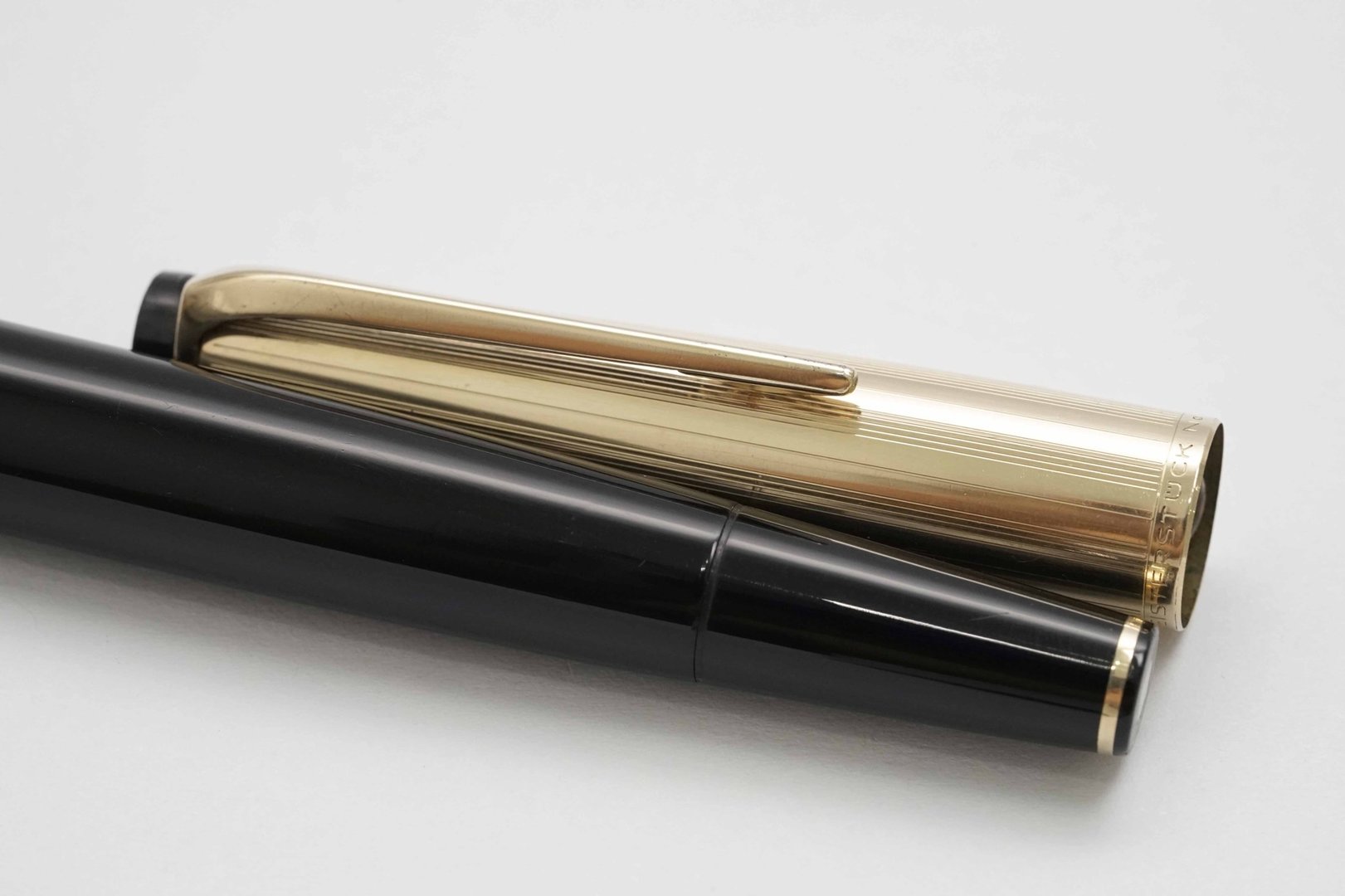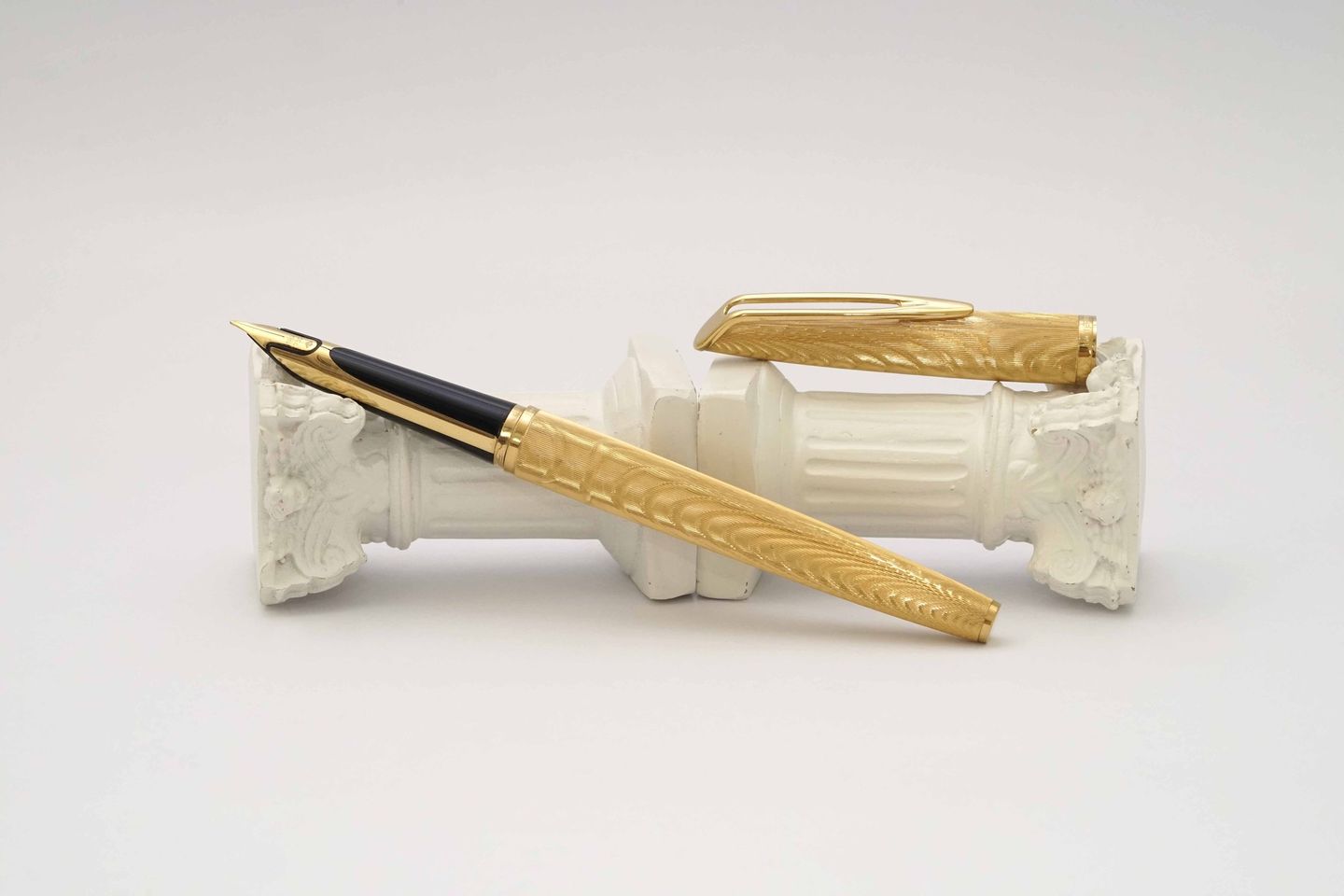 Bút máy Sheaffer Targa 1020 Imperial Brass là model khá hiếm được tung ra thị trường vào năm 1995, đây là biến thể ít gặp và khá cao cấp của series Targa đương đại thời kỳ này. Sheaffer Targa 1020 Imperial Brass có độ hoàn thiện cao về mặt thẩm mỹ với kích thước tiêu chuẩn cùng trọng lượng cân bằng hoàn hảo nên phù hợp với mọi người dùng. Thân và nắp bút bằng hợp kim đồng thau (Imperial Brass) rất dày và tạo ấn tượng sang trọng. Nắp bút đậy rất êm tay, viền nắp có khắc dòng chữ Sheaffer USA Imperial Brass. Cài bút thiết kế cứng cáp và liên kết chắc chắn nắp bút, đầu cài có trang trí chấm “white dot” đặc trưng của Sheaffer. Phần cụm ngòi là điểm nhấn cho toàn bộ cây bút với lá ngòi được khảm liền lạc với section tạo thành một khối liền mạch. Ngòi bút chế tác từ vàng 14K, lưng ngòi có khắc ký hiệu Sheaffer 14K 585 USA, ngòi bút cỡ F cho ra nét chữ êm mượt khi viết hoặc ký. Bút bơm mực bằng piston đi kèm.