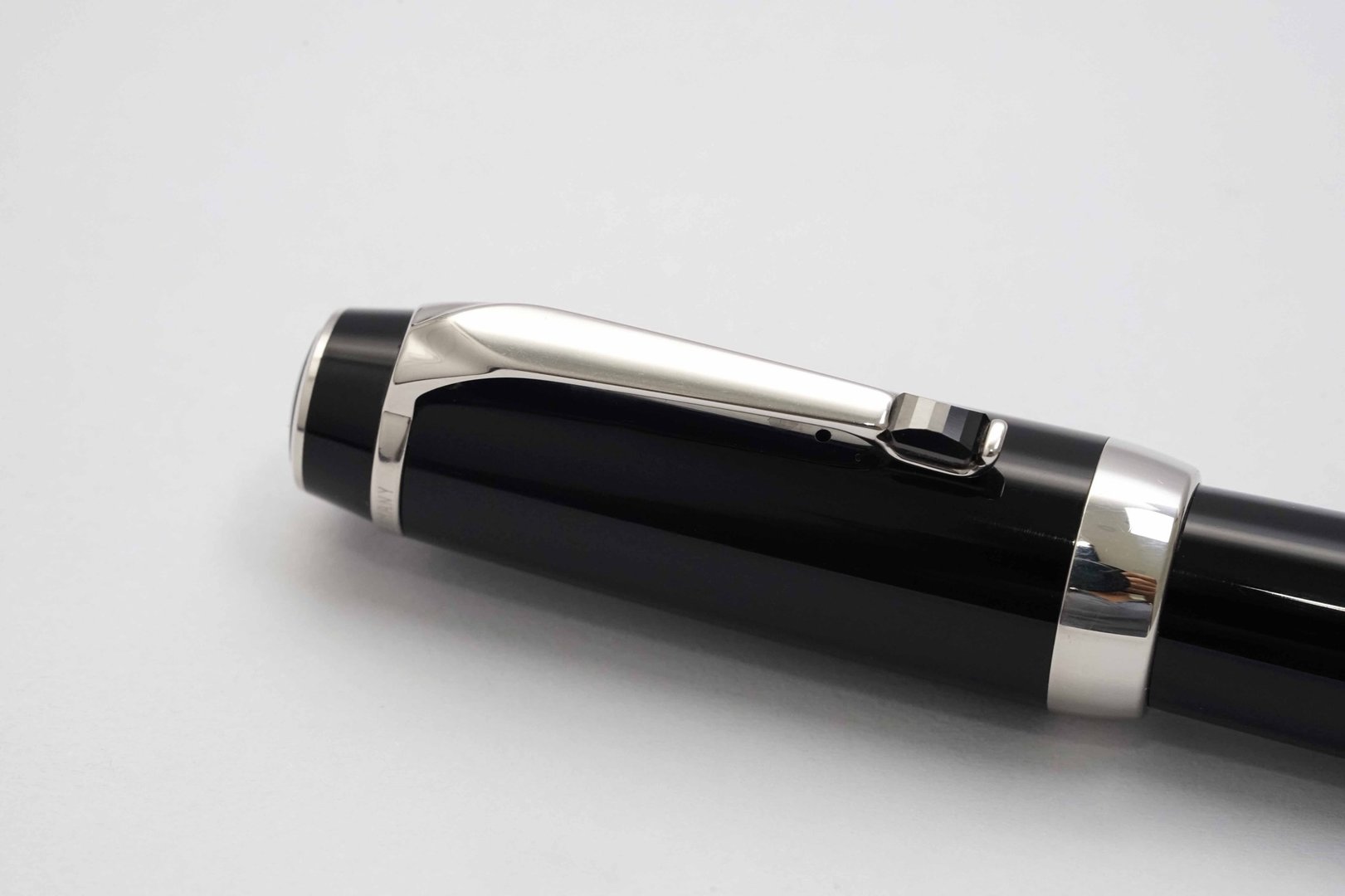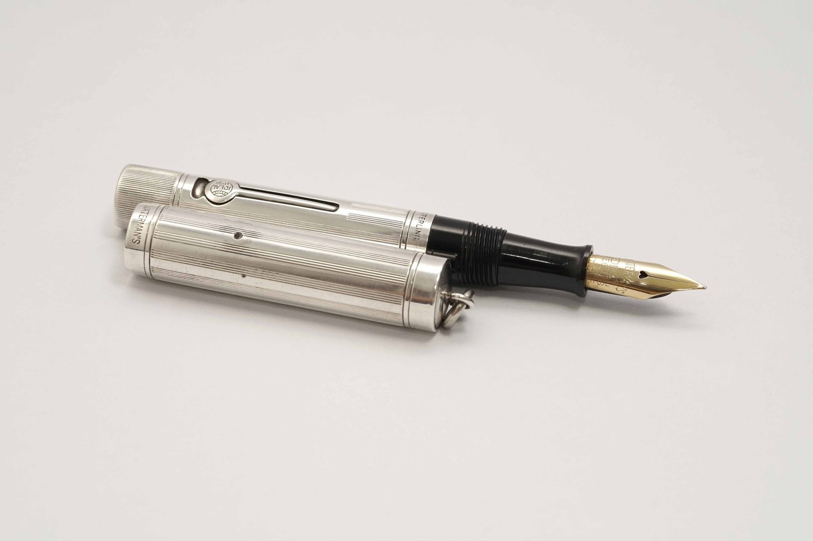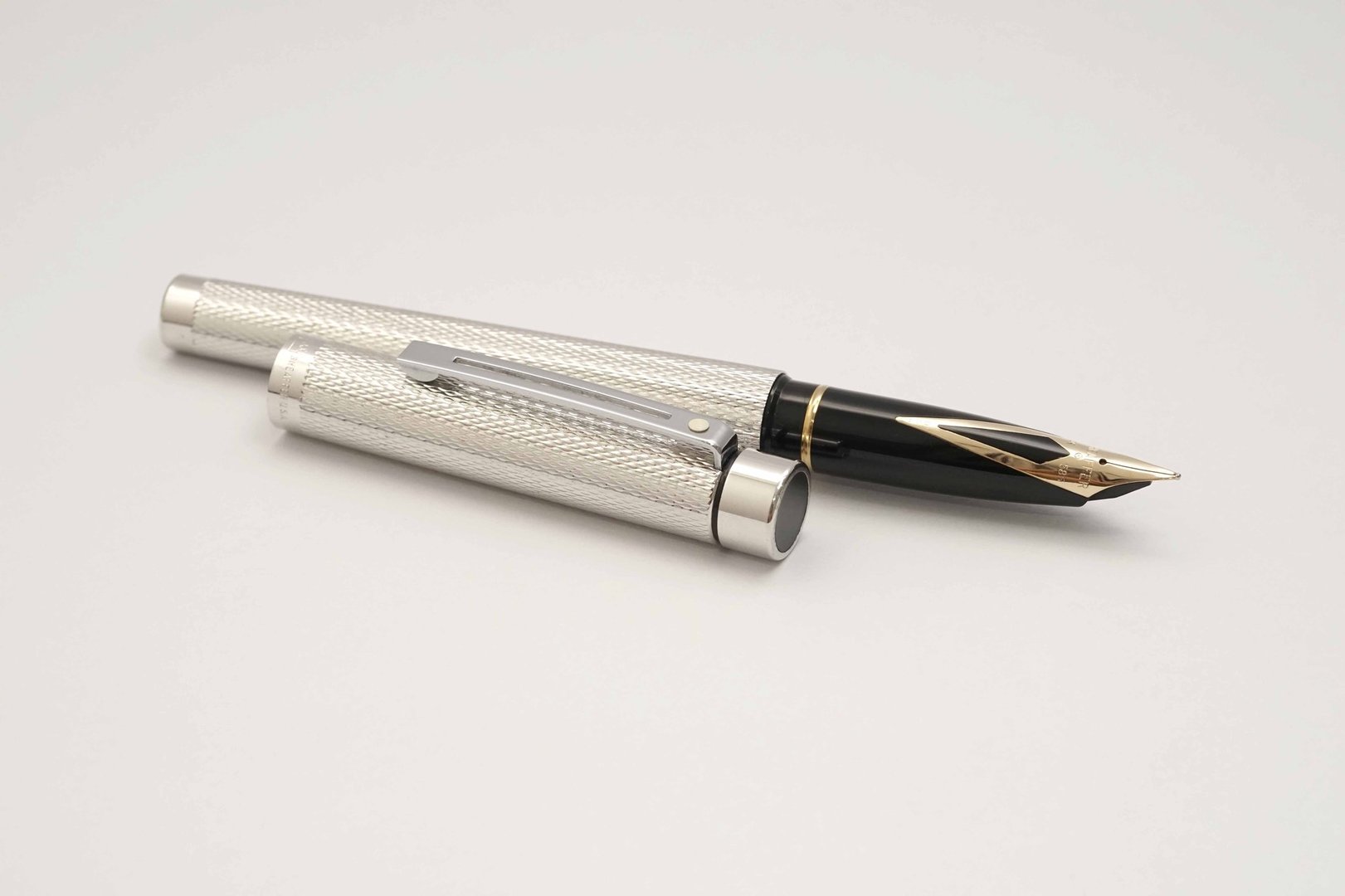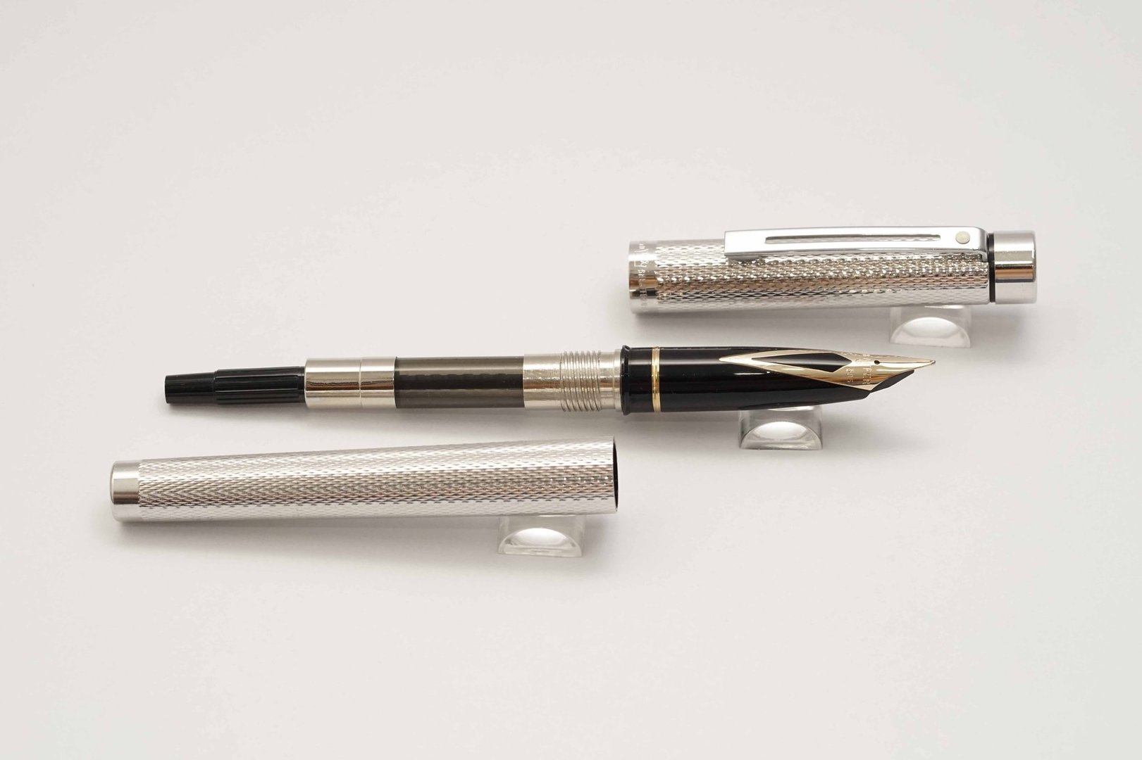 Bút Victorian Silver Sliding Dipping Pen & Propelling Pencil là phiên bản 2 trong 1 gồm cơ chế bút chấm mực và bút chì tích hợp vào cùng 1 thân bút. Bút được chế tác thủ công vào thời kì Victoria bởi hãng William Vale & Son tại thành phố Birmingham, Anh Quốc vào năm 1899. Bút có kích thước nhỏ gọn trong lòng bàn tay rất đặc trưng của những cây bút cổ. Thân bút hình lục giác gia công hoàn toàn bằng tay từ chất liệu bạc khối 925, bề mặt vỏ bút được hoàn thiện bởi các hoa văn điêu khắc tinh tế và đậm chất nghệ thuật. Bên hông thân bút có đóng 3 dấu silver hallmark nhỏ kèm logo W.V&S sắc nét. Đỉnh nắp là điểm nhấn đặc trưng của các dòng bút thời kỳ Victoria với cụm hoa văn “acanthus” chạm khắc tinh xảo. Thân bút có 2 rãnh trượt để đẩy cụm ngòi bút chấm và cụm ngòi bút chì khi sử dụng. Cụm ngòi bút chấm đi kèm lá ngòi bằng vàng 18K có độ dẻo cao, lưng ngòi có khắc dòng chữ Page & Prattli Ludgate Circus The City Stub. Cụm ngòi chì gắn ruột chì size 0.7.