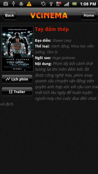 Nói chung giao diện cũng mượt mà, ưa nhìn và dễ sử dụng. Phần mềm luôn cập nhật thông tin chi tiết về lịch chiếu phim cũng như trailer của các phim hot đang chiếu tại các rạp lớn trên toàn quốc. Không những thế nó còn cập nhật các chương trình ưu đãi giảm giá từ các rạp nữa B-)