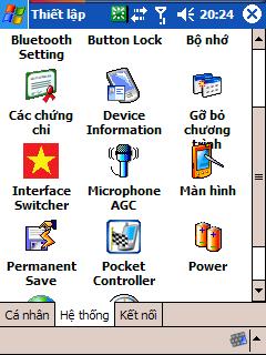 JUDEInterfaceSwitcher chương trình Việt Hóa cho O2 Mini. Chạy tốt trên WM03 SE. Cài chương trình trên Main. Cài xong vào Settings\System nhấp vào biểu tượng Interface Switcher, hộp thoại hiện ra và chọn tiếp ngôn ngữ Tiếng Việt. Ok, Ok tiếp để Soft Reset lại máy. Máy bạn đã chuyển sang Tiếng Việt. Nếu máy bạn chuyển sang hệ thống Tiếng Việt mà không chuẩn, có lẻ máy bạn chưa cài Font Tahoma Tiếng Việt.