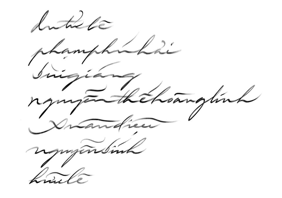 Vừa xong là cầm bút, tiếp theo bạn có thể để ý đến đoạn nối các chữ, và đoạn ngắt các chữ, mỗi người sẽ có cách ngắt - nối - chuyển khác nhau, các bạn có thể quan sát và học tập, tập nối. Ví dụ mình nhìn thấy: n-g-ay, mai, t-oi, son-g, n-ot, hom, nay Trên đoạn này có thể có chỗ dừng để hợp lý với độ di chuyển tay. Các bạn đã đọc 2 quy tắc nối : liên kết trên dưới, bắc cầu, đoản mạch. Đa phần chỉ dùng liên kết bắc cầu là chủ yếu như nối o-i, v-I, liên kết trên dưới nếu đưa bút quen tay sẽ dùng thường xuyên hơn. Khi phân tích hoặc nhờ người có chữ mình thích, viết thử, để viết được ngay. Quy luật là để phá vỡ, thậm chí 2 tác giả ở trên kia, các bạn cũng sẽ thấy họ đôi khi cũng chả tuân theo quy tắc nào, đôi vẫn viết ngắt đ-ô-i chứ không viết đ-ôi. Đó là thói quen cá nhân, nhưng với mình trên cơ sở xây dựng được 1 mối liên kết hay tổ hợp giúp hình thành thói quen và hệ thống chữ thì luôn tìm ra cách để ứng xử trong mọi trường hợp. Nếu tập xong mà không nhớ thì….kệ nó. Sau đó sửa dần.