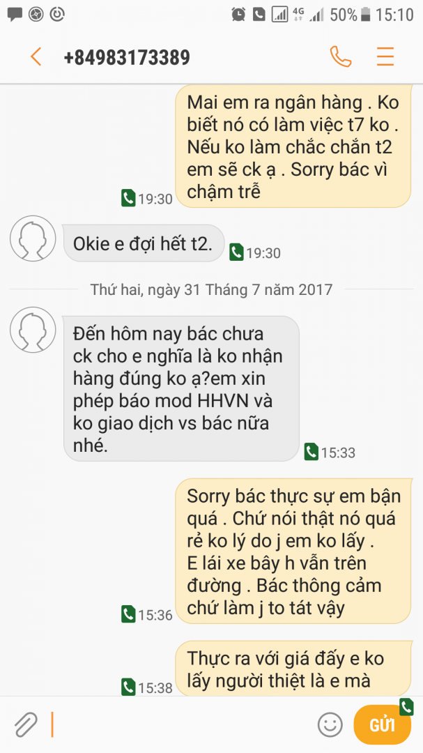 Bác @MonMon82 thắng đấu giá em đã liên hệ và bác ấy hẹn đi hẹn lại nhiều lần. Và hẹn cuối cùng là Thứ 2 ngày 31/7/2017 và cũng không thấy hồi âm.